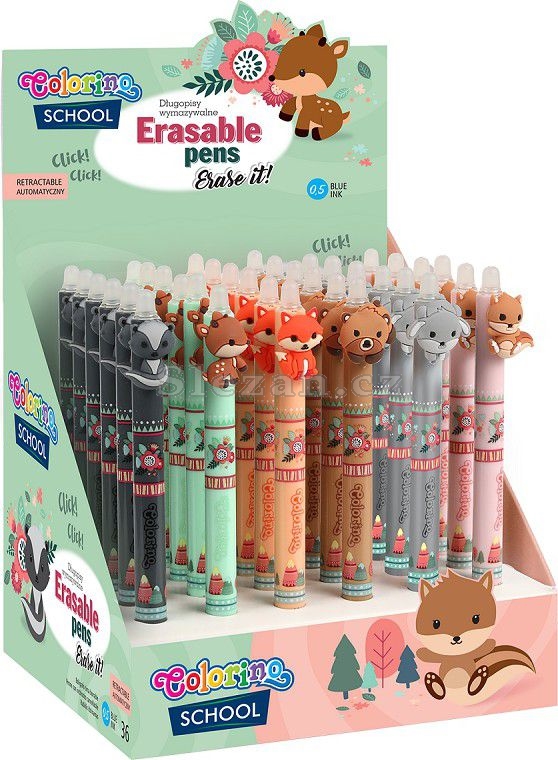 Praktická gumovatelná pera pro děti s motivy roztomilých zvířátek. Kvalitní inkoust lze v případě potřeby jednoduše vygumovat a přepsat.