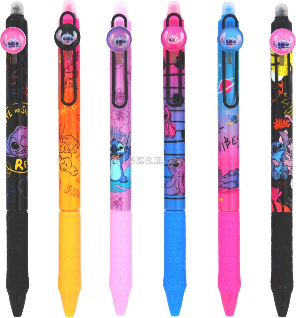 Veselá gumovatelná pera s šesti různými motivy mimozemského Stitche. Úchopová zóna ve tvaru plástve s protiskluzovou úpravou zajistí pohodlné psaní. Klip pera s obrázkem Stitche, barva náplně modrá.
