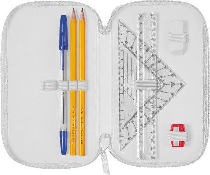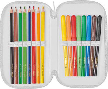 23 dílů - 8 fixů, 8 pastelek, 2 tužky, ořezávátko, guma, kuličkové pero, 16 cm pravítko, trojúhelník