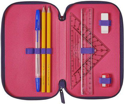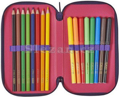 23 dílů - 8 fixů, 8 pastelek, 2 tužky, ořezávátko, guma, kuličkové pero, 16 cm pravítko, trojúhelník