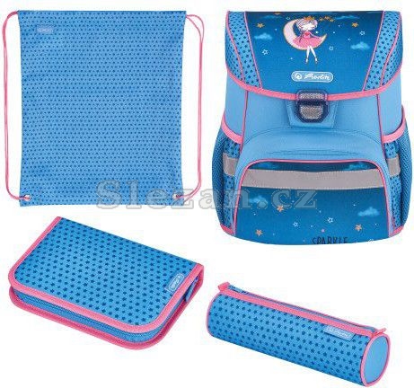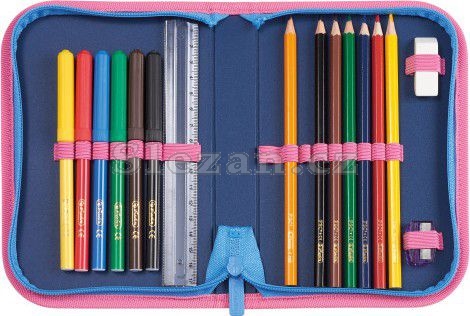 výbava: penál 16 dílů, sáček na cvičky, kulaté pouzdro