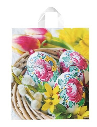 Celoplošně potištěná igelitová taška s motivem velikonočních vajíček a navařeným uchem. Síla igelitky: 0,050 mm Rozměr: 390mm x 460mm x 80mm (Š x V x H) Vyrobeno v EU.