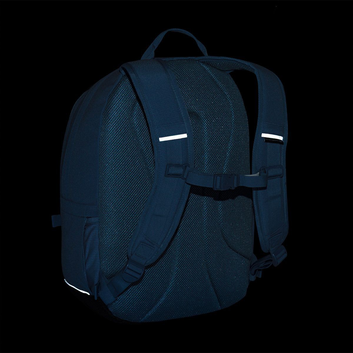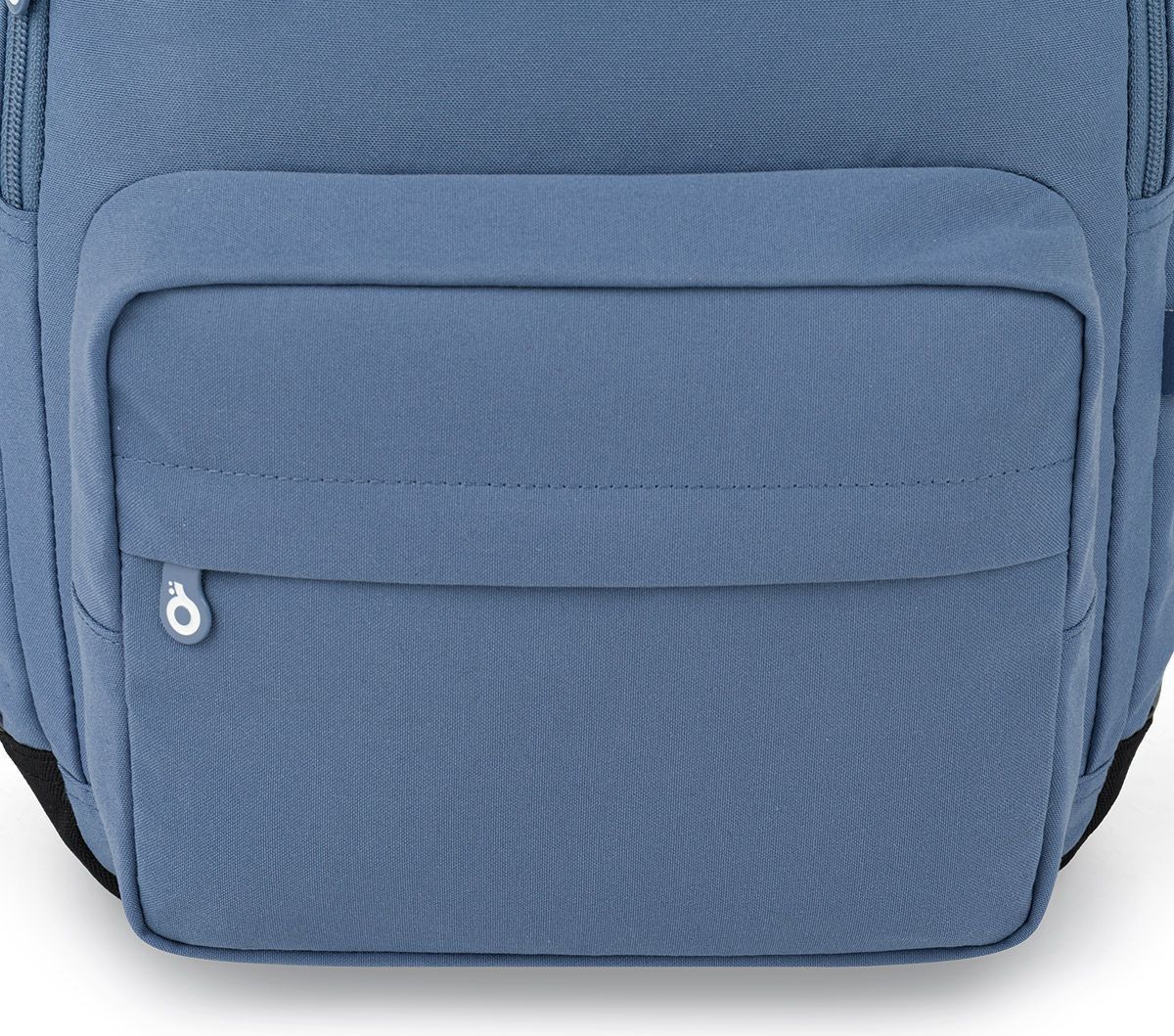 Kromě dvou hlavních komor má batoh dvě přední kapsy, do kterých se krásně vejde ETUE 23026 ve stejném designu nebo svačinový box. Do přední kapsy jsme umístili praktickou síťovanou kapsičku na doklady a poutko na klíče. Po obou stranách batohu najdete hluboké kapsy na lahev s pitím. Reflexní prvky jsou decentně zakomponovány tak, aby nenarušovaly čistý vzhled batohu, ale zajistily vaši bezpečnost.