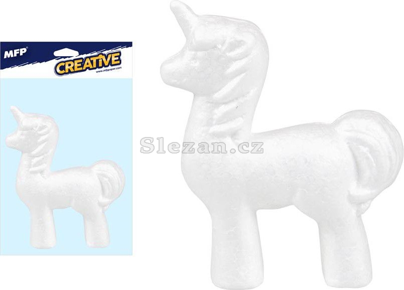 Jednorožec (unicorn) z hladkého polystyrenu k vytvoření dekorace.