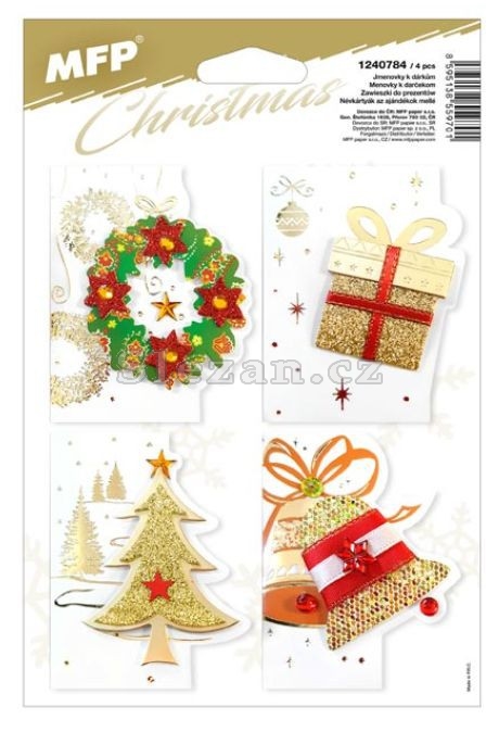 - 4 ks jmenovek s různými motivy (adventní věnec, dáreček, stromeček, zvonek)