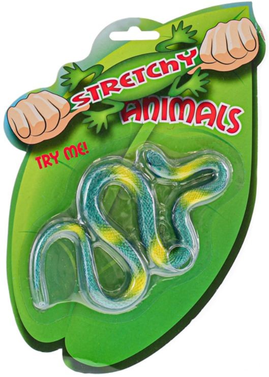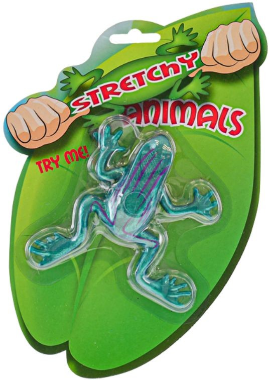 - Měkké a pružné natahovací zvířátko z gumy, na kartě, ve třech variantách provedení (žabička, had, ještěrka).