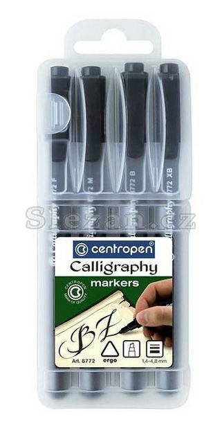 Kaligrafické popisovače tvořící soupravu jsou dodávány ve tvarové etui s vložkou.