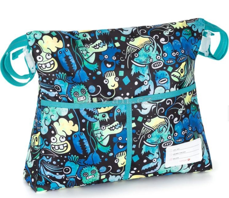 Jedna velká a dvě menší kapsy jsou určeny na uschování drobností každého školáka (vodové barvy a jiné školní pomůcky).