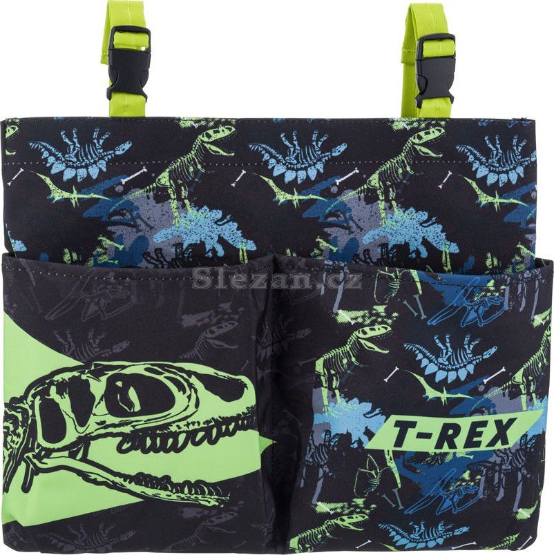 Veselý sáček na přezůvky s T-rex motivem vyniká snadným uzavíráním šňůrkami. Může se nosit na zádech nebo připevnit k batohu pro větší pohodlí.