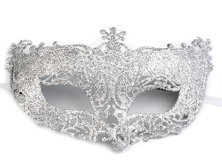 Popis Karnevalová maska - škraboška s glitry 1 stříbrná, 1 ks