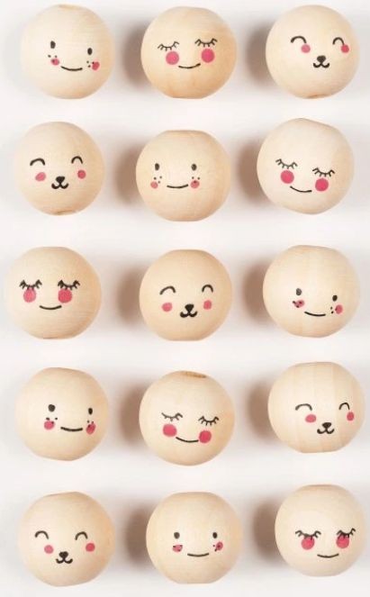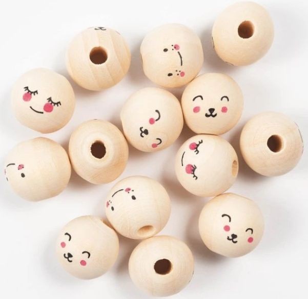 - Balení obsahuje 15 dřevěných korálků ve tvaru obličejů, které jsou skvělé pro výrobu andělíčků, panenek, skřítků nebo zvířátek.