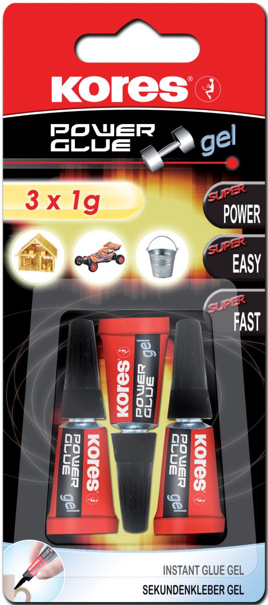 Popis Vteřinové lepidlo Kores Power Glue Gel 3x1g
