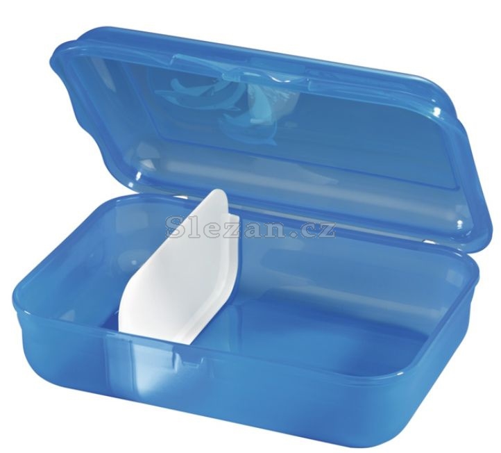 - uvnitř krabičky je vyjímatelná, posuvná přepážka pro oddělení potravin např. zeleniny, ovoce či sladkosti