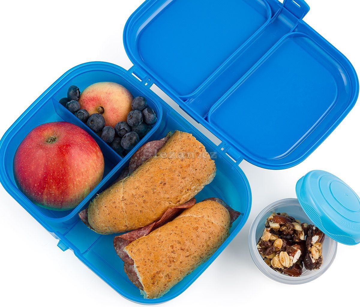 Díky vyjímatelnému organizéru oddělíte suchou část svačinky od mokré (například pečivo od ovoce). Jogurt, oříšky nebo granolu můžete separovat do dózy se šroubovacím víčkem.