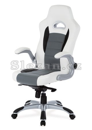 kancelářská křeslo v kombinaci barev bílá a šedá, vysoký opěrák,