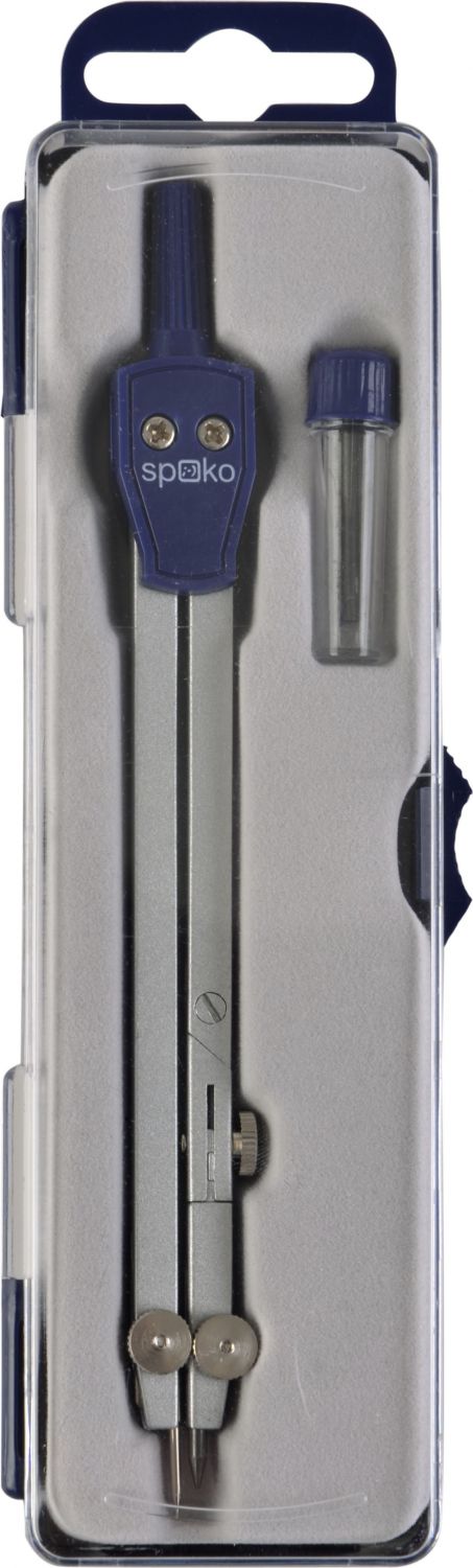 Kovové kružítko s jedním ohebným kloubem, vhodné do školního penálu. Výhodné balení s náhradní tuhou v praktické pevné krabičce. Manipulace s tuhou, jehlou a kloubem pomocí šroubů.