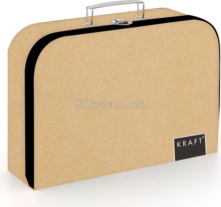 Lamino kufřík na výtvarnou výchovu. Do kufříku se vejde formát A4. Materiál: papír, lepenka, kovový zámeček, kovové nýty.