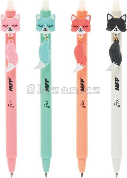 Gumovací kuličkové pero s liškou obsahuje speciální inkoust tzv. vymaž a přepiš, nebo vymaž a nech znovu objevit.