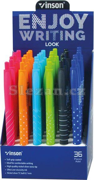 Plastové kuličkové pero VSN 3202 s klipem a inkoustem na olejové bázi. Tento olejový inkoust poskytuje velice komfortní psaní a rychle zasychá. Vhodné pro školní, kancelářské, ale i domácí použití. Gelové pero má pogumovaný úchop, a tak zabraňuje klouzání v ruce. Provedení: stiskací mechanismus