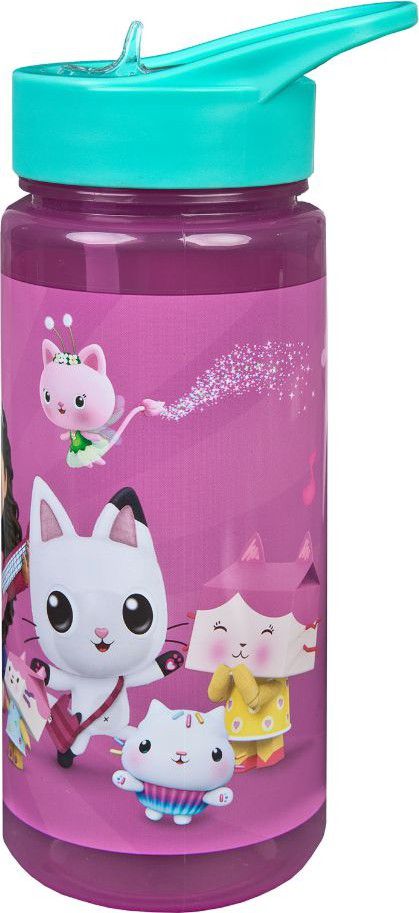 Plastová láhev na pití s motivem Gabby´s Dollhouse s integrovaným brčkem a odklápěcím pítkem.