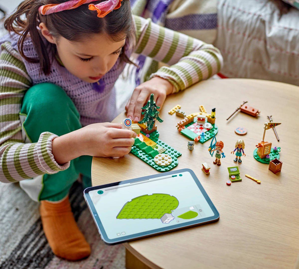 Součástí stavebnice Lukostřelnice na dobrodružném táboře pro děti od 6 let jsou minipanenky Autumn a Novy, mýval a spousta sportovních doplňků. Holky i kluci s touto napínavou stavebnicí můžou trénovat střelbu na terč, protože luk skutečně vystřeluje šípy. Sledujte, jak se terč otočí, když ho zasáhne šíp! K dispozici je barevně značená stupnice obtížnosti, takže děti mohou terč posunovat dál a zkoušet náročnější výzvy. Malí dobrodruzi se s touto stavebnicí lukostřelnice pustí do vyprávění nekonečných příběhů. Figurka Autumn má hned 2 různé tváře, aby mohla měnit výraz, když míří. Nova dostane odznak na lukostřelbu do svého památníčku z tábora. Autumn a Nova si pak odpočinou a pochutnají si na sendvičích. Dávejte si ale pozor na drzého mývala, který by si rád přivlastnil jejich oběd!