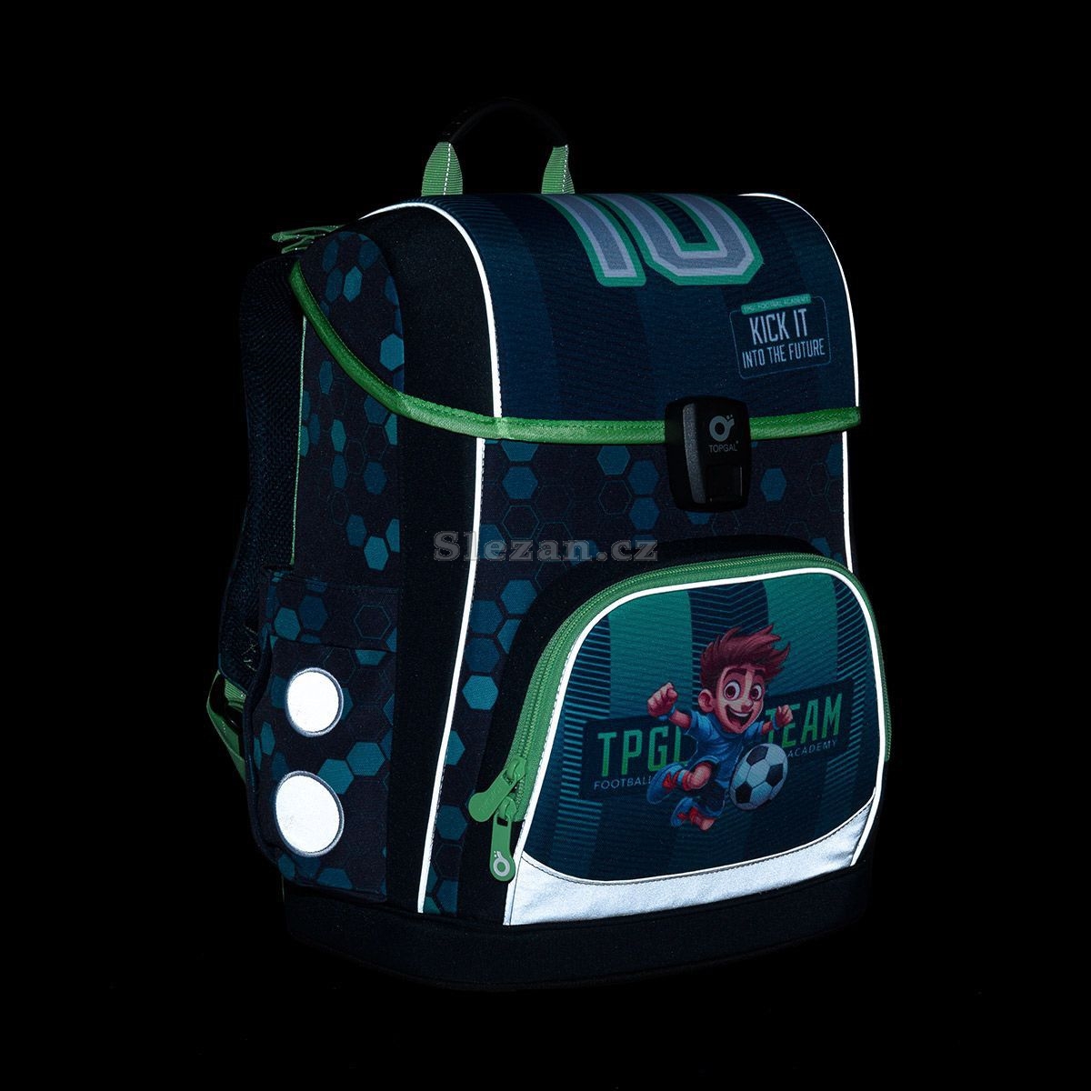 - reflexní prvky: na čele a bocích batohu, na ramenních popruzích