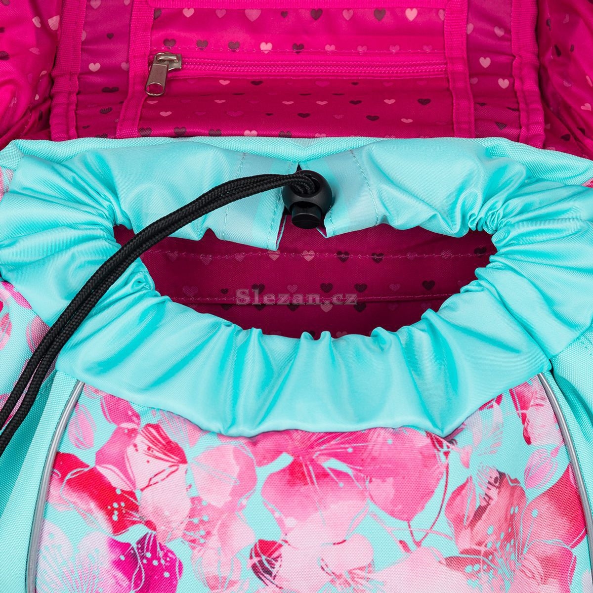 V objemné hlavní kapse najdete organizér, dvě malé kapsy na drobnosti a jmenovku, v přední kapse karabinu na klíče. Po stranách jsou dvě pevné kapsy na zdravou lahev ZIVA o objemu 0,5 litru.