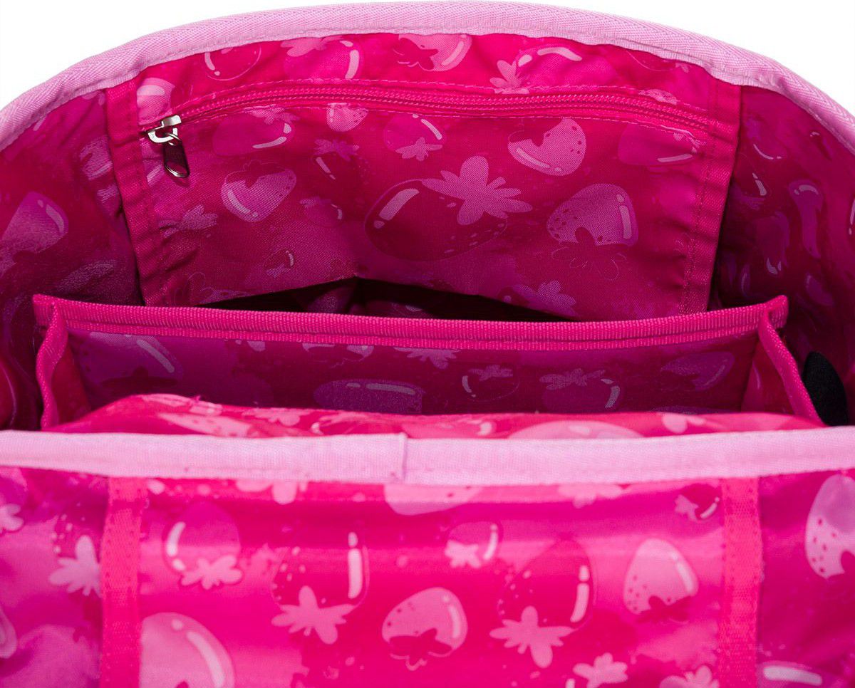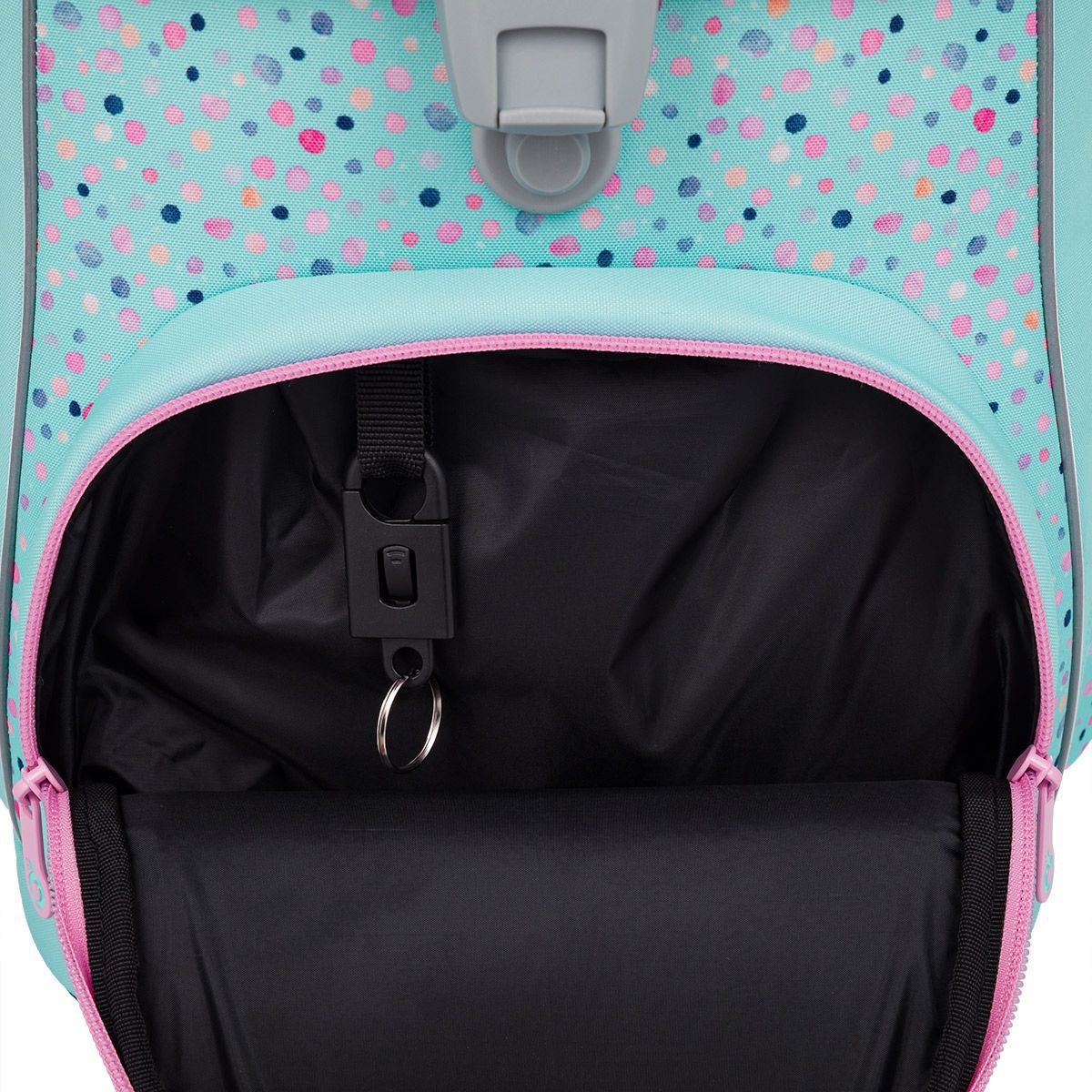 V objemné hlavní kapse najdete organizér, dvě malé kapsy na drobnosti a jmenovku. Po stranách jsou dvě pevné kapsy na lahev ZIVA o objemu 0,5 litru. Do přední kapsy jsme přidali odnímatelnou karabinu na klíče, s kvěle se tam vejde také penál PENN 25001 ve stejném designu, nebo naše krabičky na svačiny s vyjímatelným organizérem.