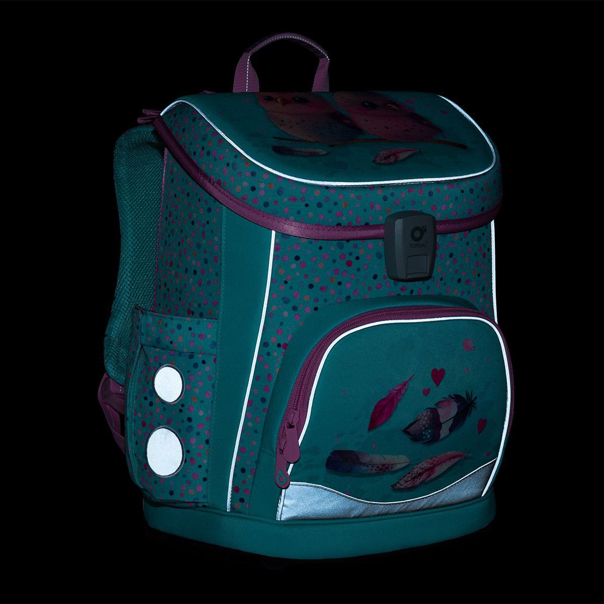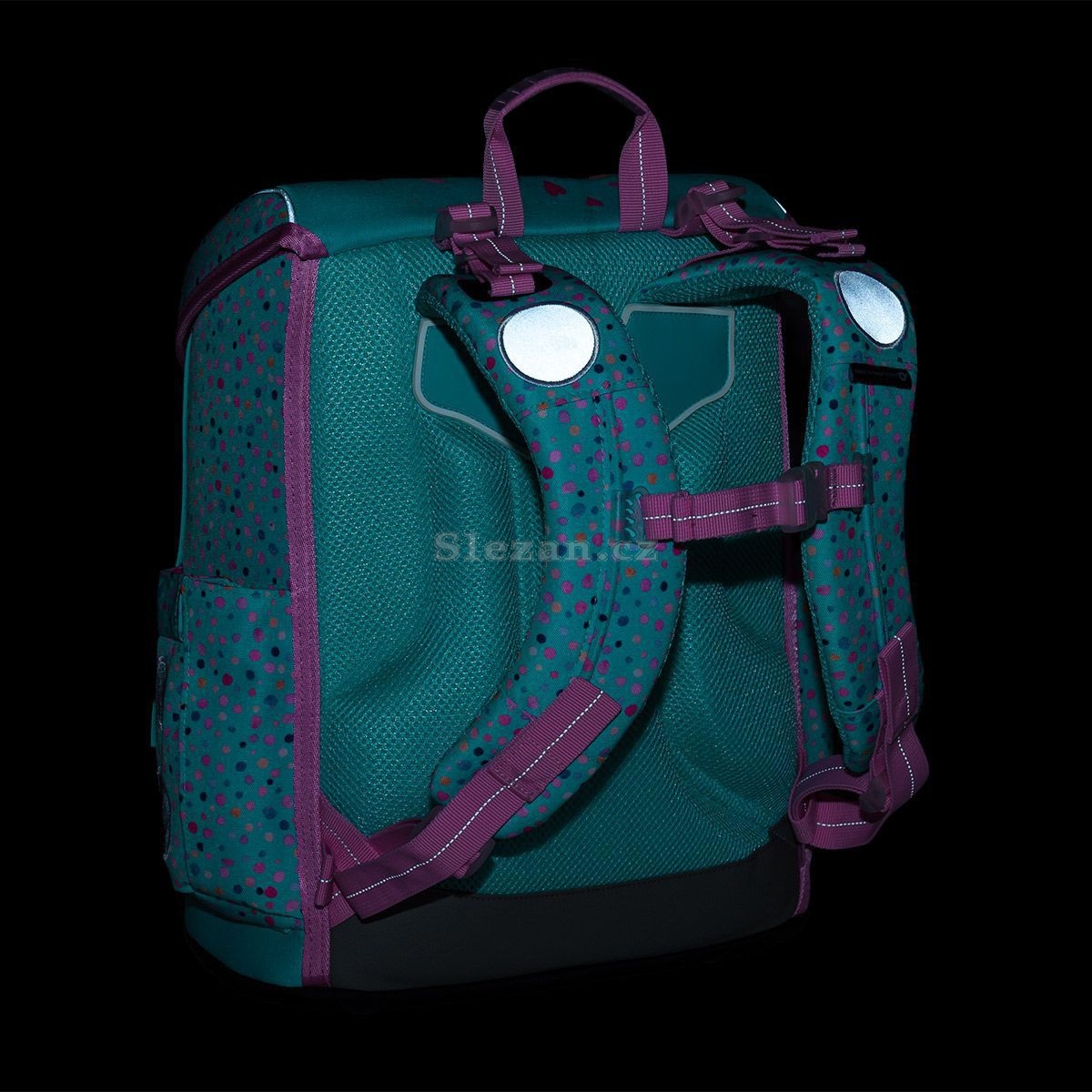 - reflexní prvky: na čele a bocích batohu, na ramenních popruzích