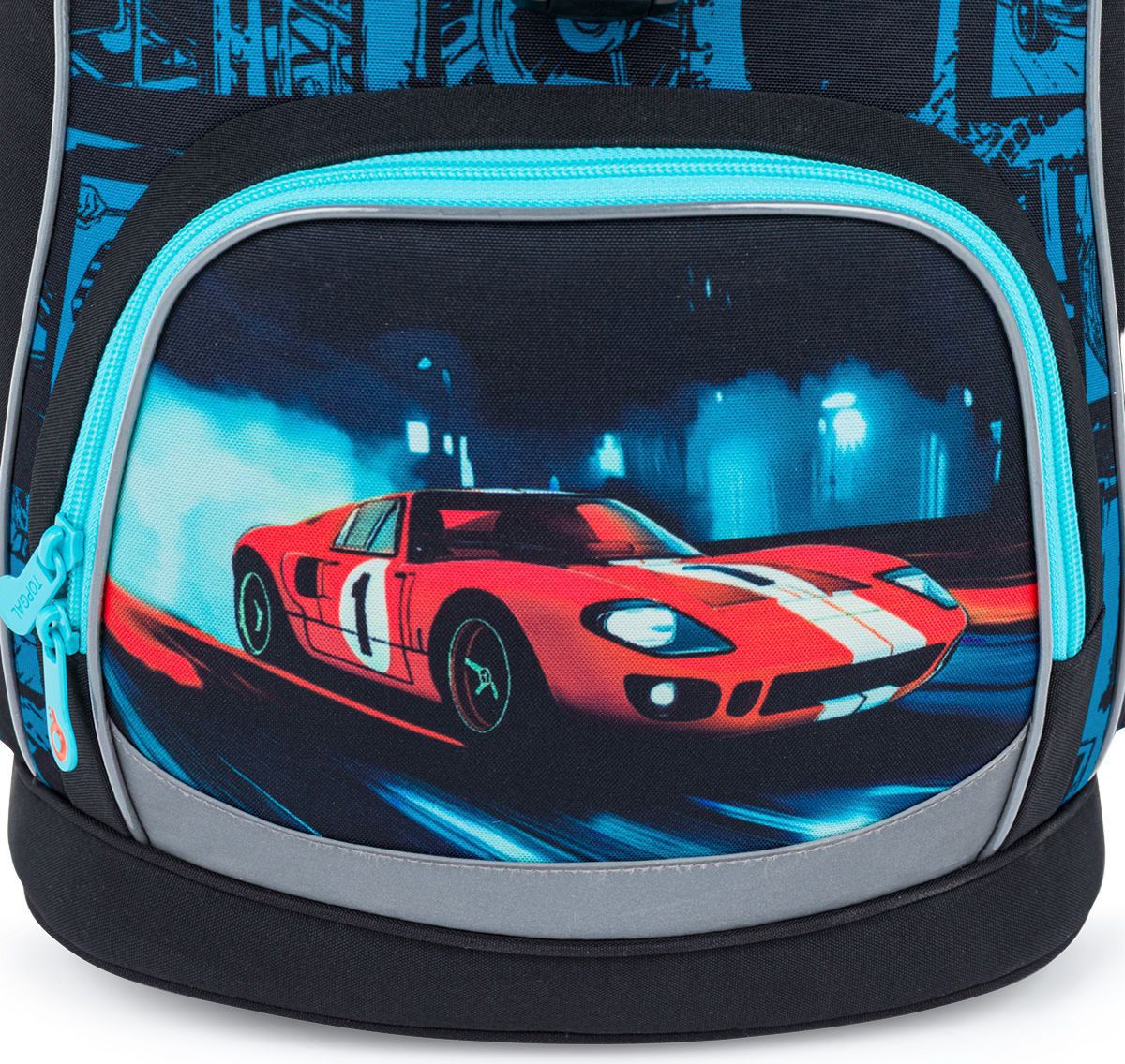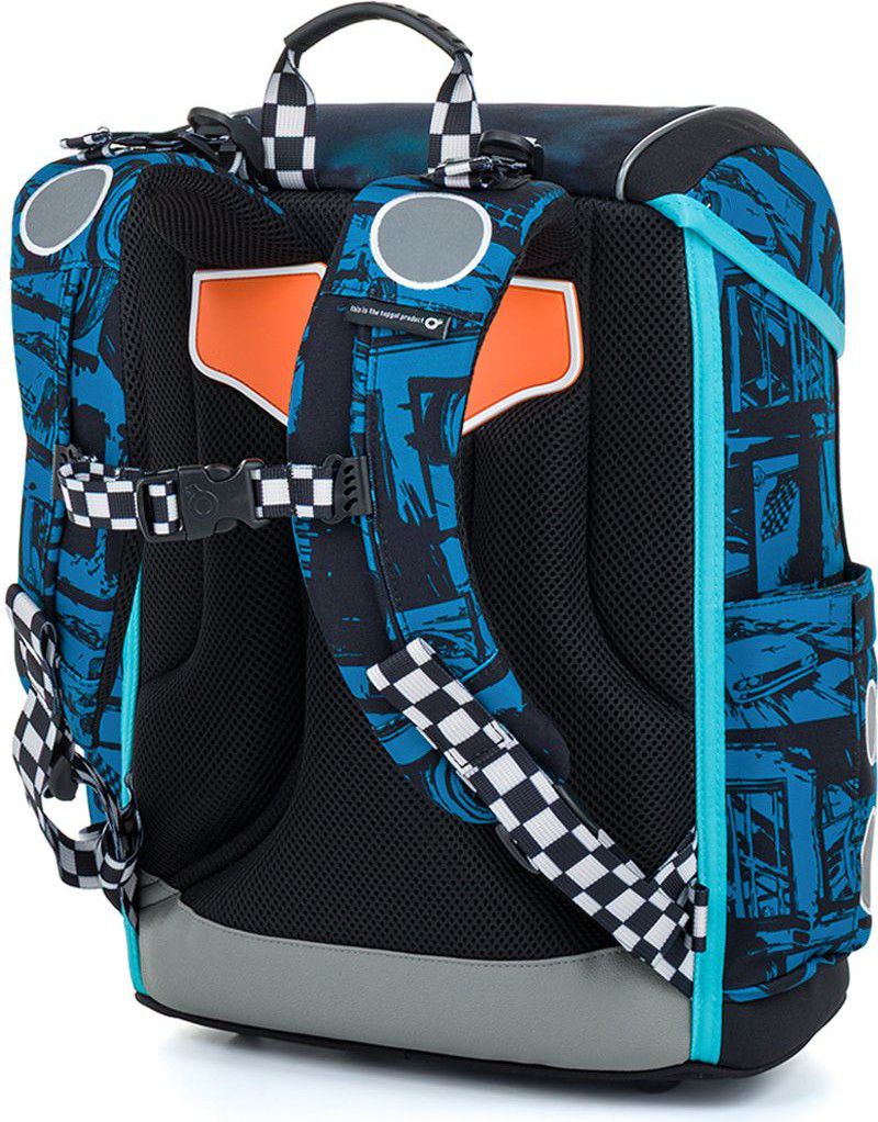 O bezpečí dítěte se postarají výrazné reflexní prvky rozmístěné na všech stranách aktovky. Moderní chlapecký design v odstínech modré a černé doplňuje výrazné závodní auto, které připomíná rychlost, energii a dobrodružství nočních ulic. AIRA 26012 je tak perfektní volbou pro všechny malé závodníky, kteří milují auta.