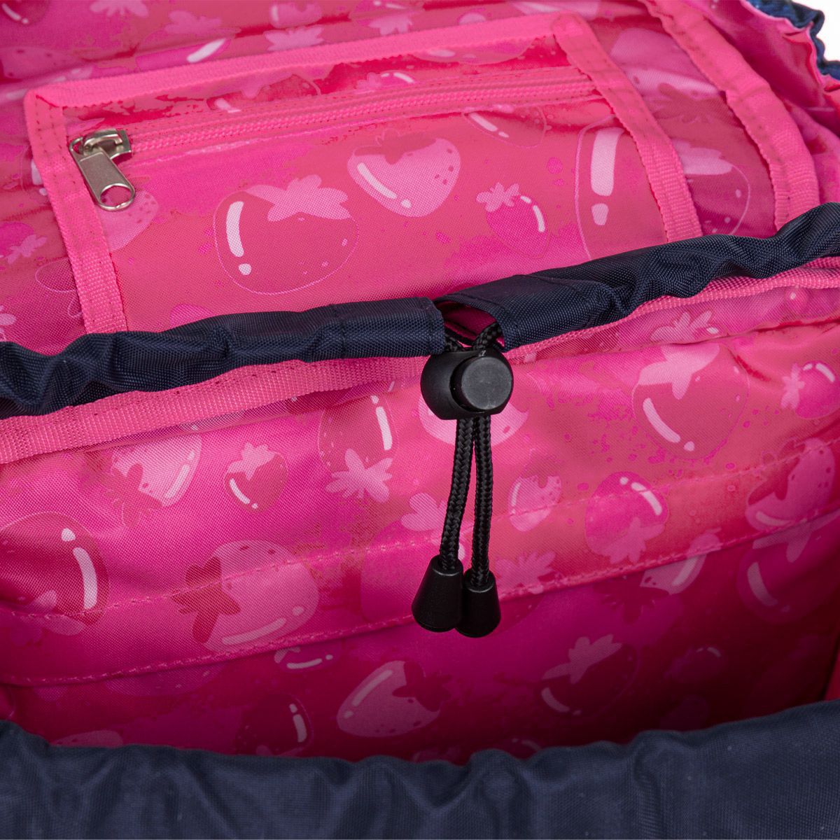 V objemné hlavní kapse najdete organizér, dvě malé kapsy na drobnosti a jmenovku. Po stranách jsou dvě pevné kapsy na lahev ZIVA o objemu 0,5 litru. Do přední kapsy jsme přidali odnímatelnou karabinu na klíče – skvěle se sem vejde také penál PENN 26004 ve stejném designu, nebo naše krabičky na svačinu s vyjímatelným organizérem.