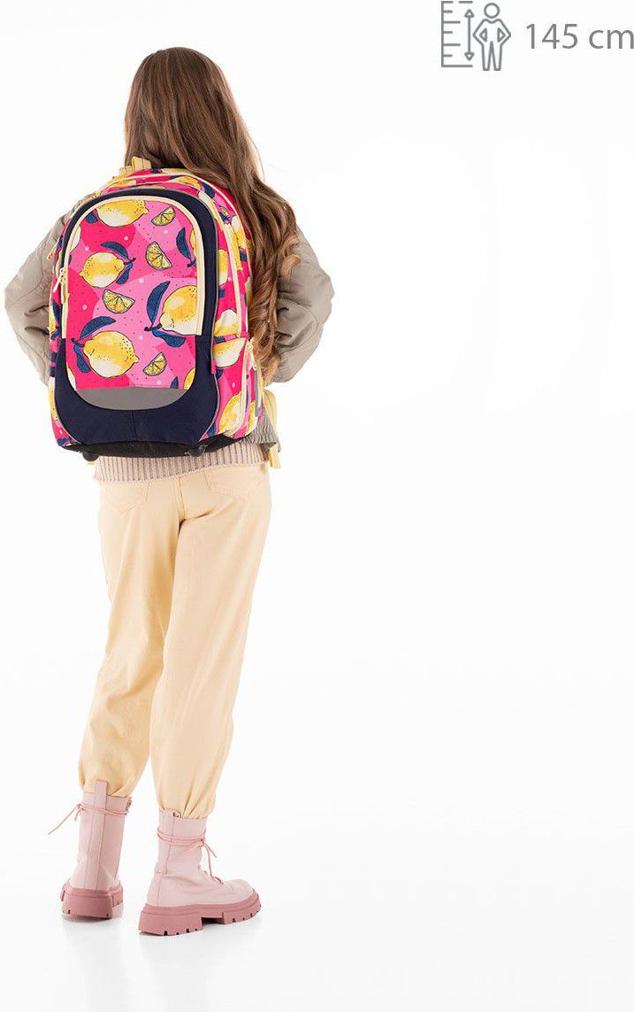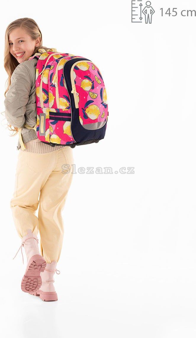 Dvoukomorový batoh CODA vyhovuje všem vyšším školákům na prvním stupni ZŠ (doporučujeme od 130 cm). Díky velkému objemu jej ale určitě využijete i v prvních třídách druhého stupně ZŠ. Letošní střih je vyveden v jasných barvách s potiskem s citrony.