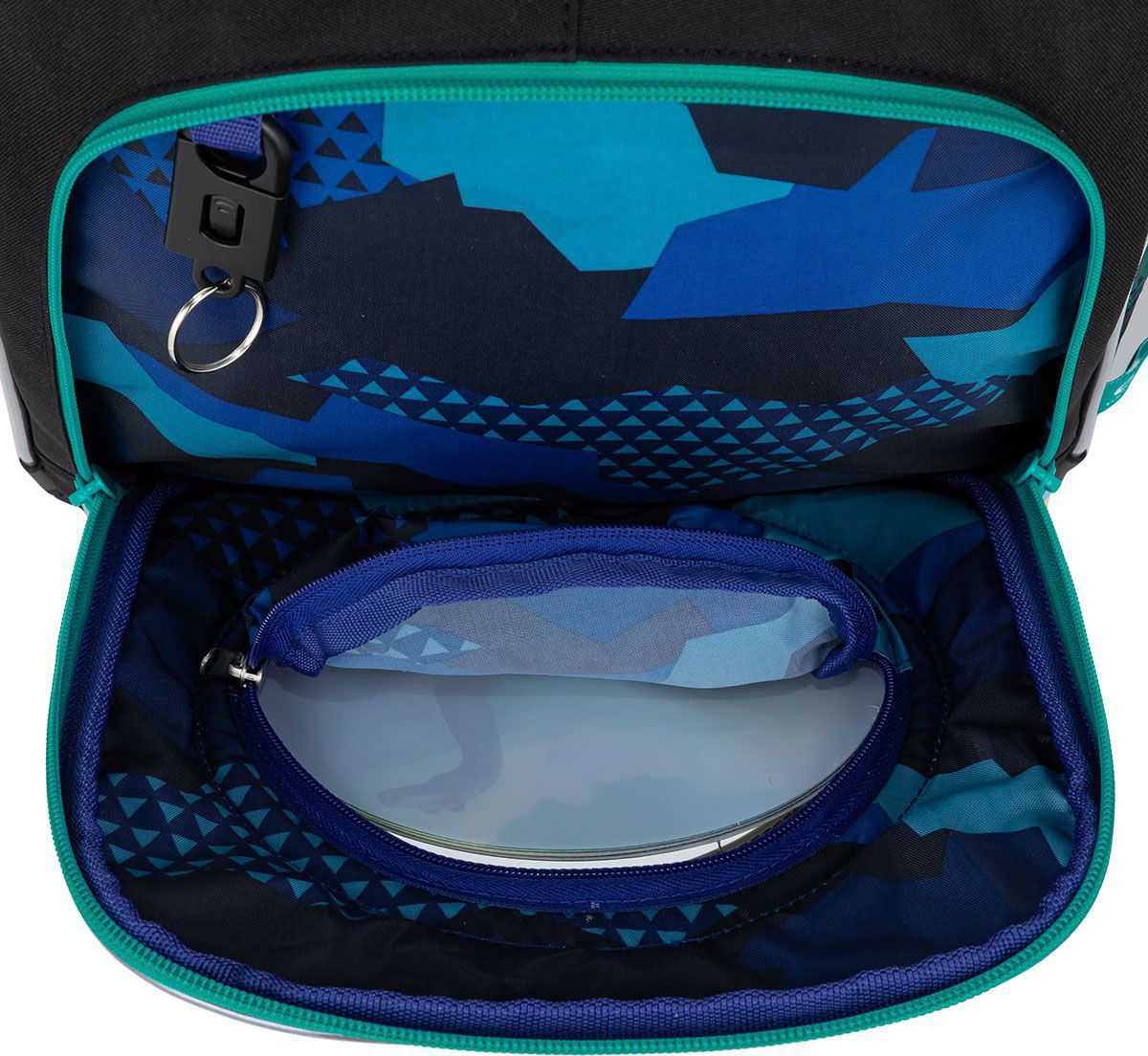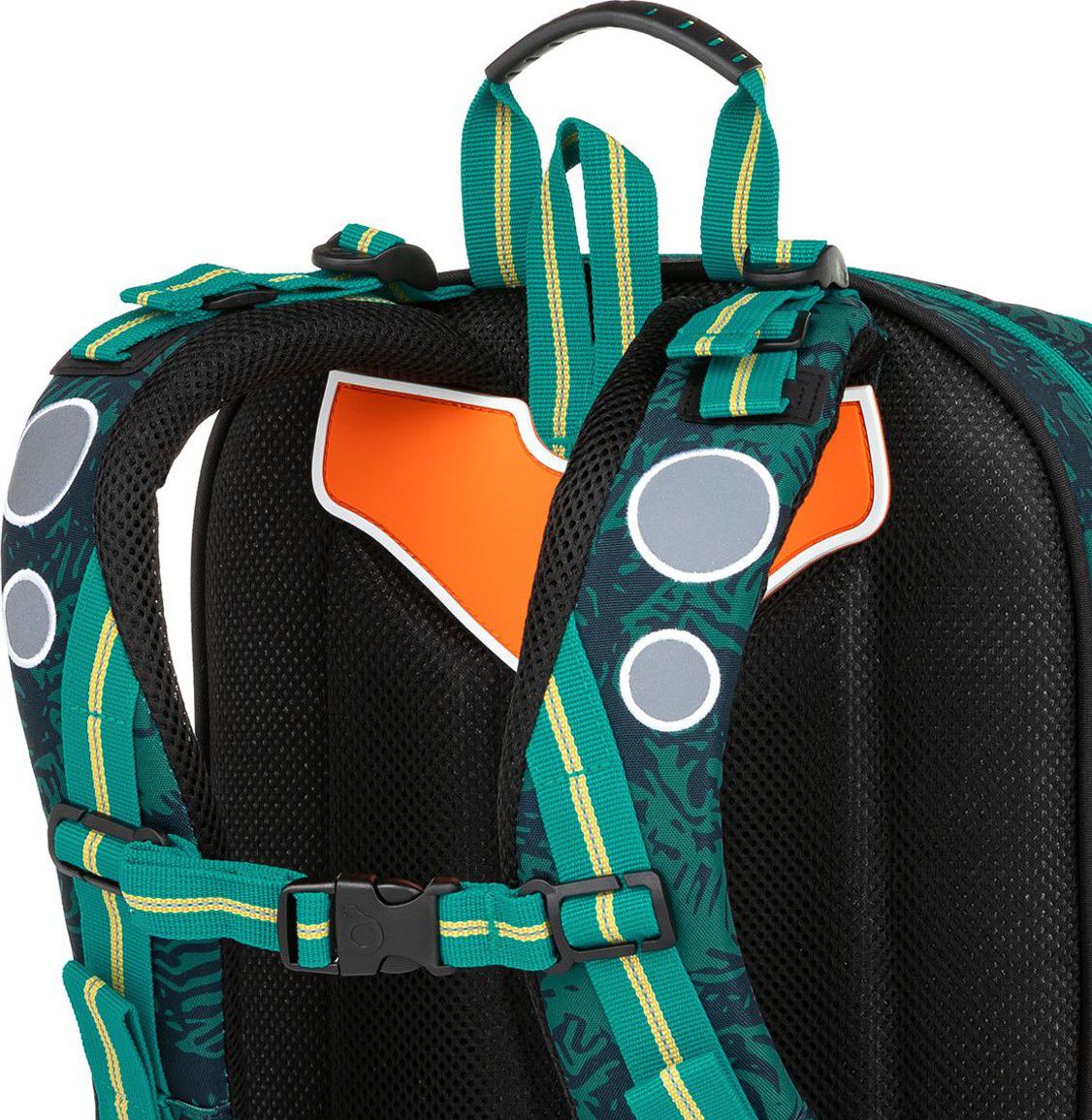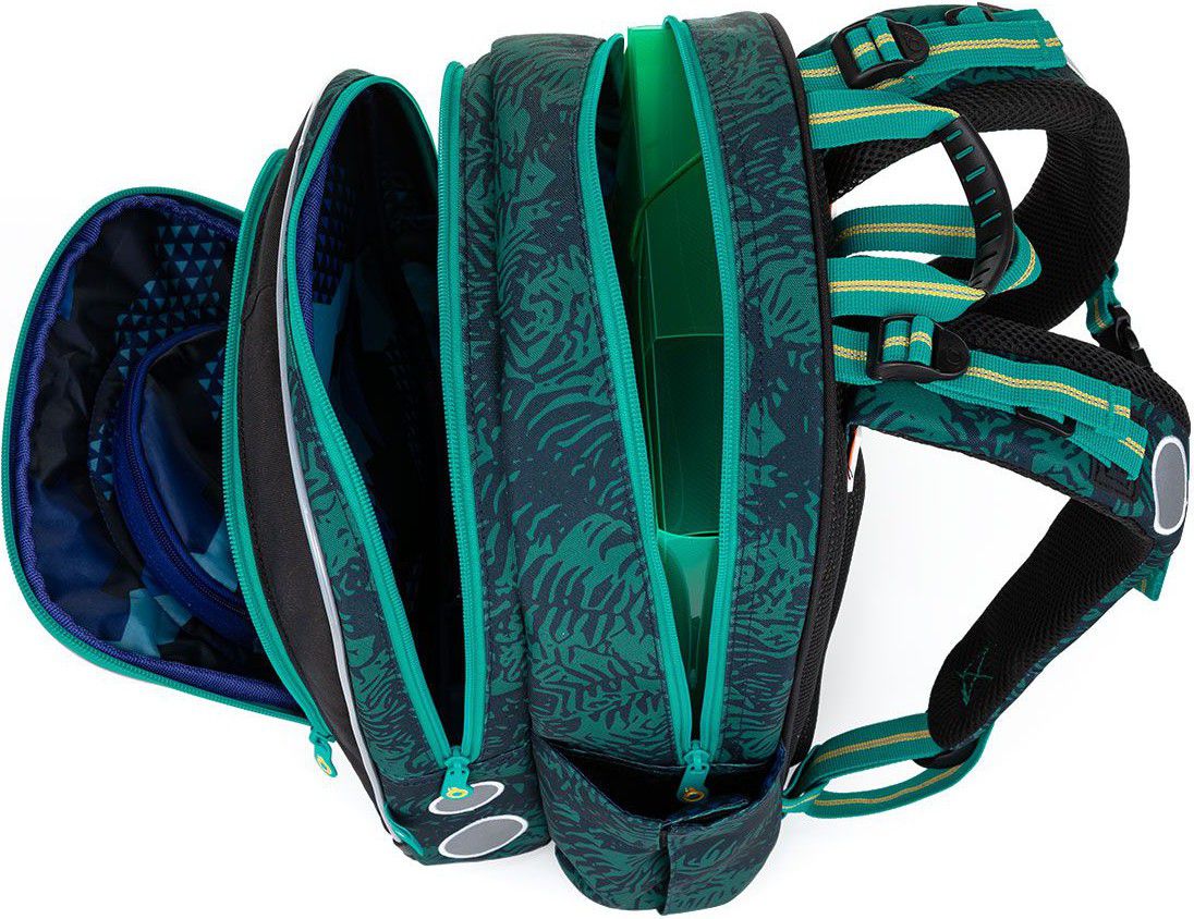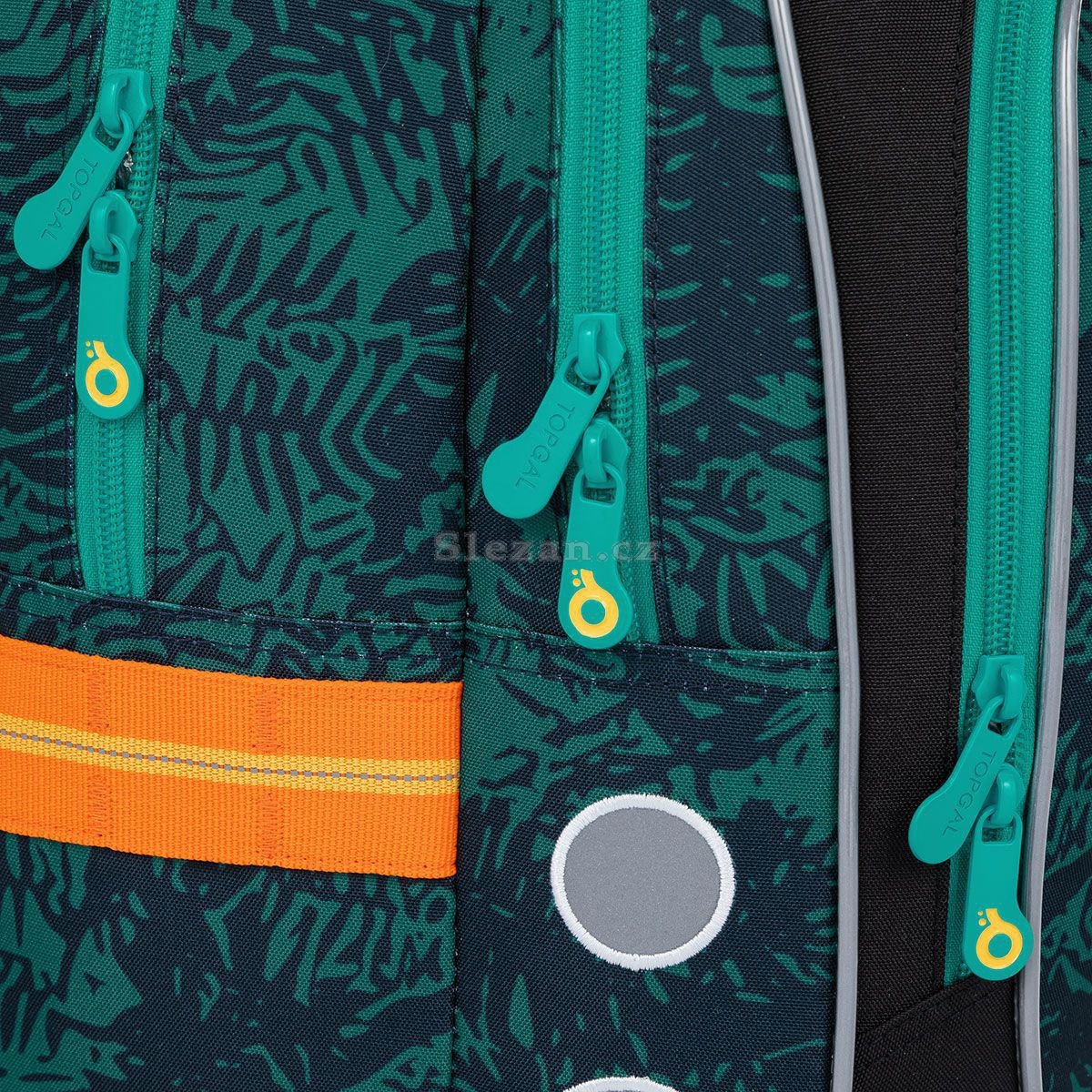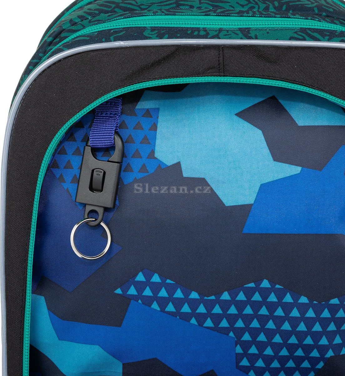 Batoh má dvě objemné hlavní komory. Zadní komora je širší - doporučujeme k zádům dávat nejtěžší učebnice nebo desky na sešity. Přední komora je o něco užší a je v ní umístěna ještě malá síťová kapsa na zip a jmenovka.