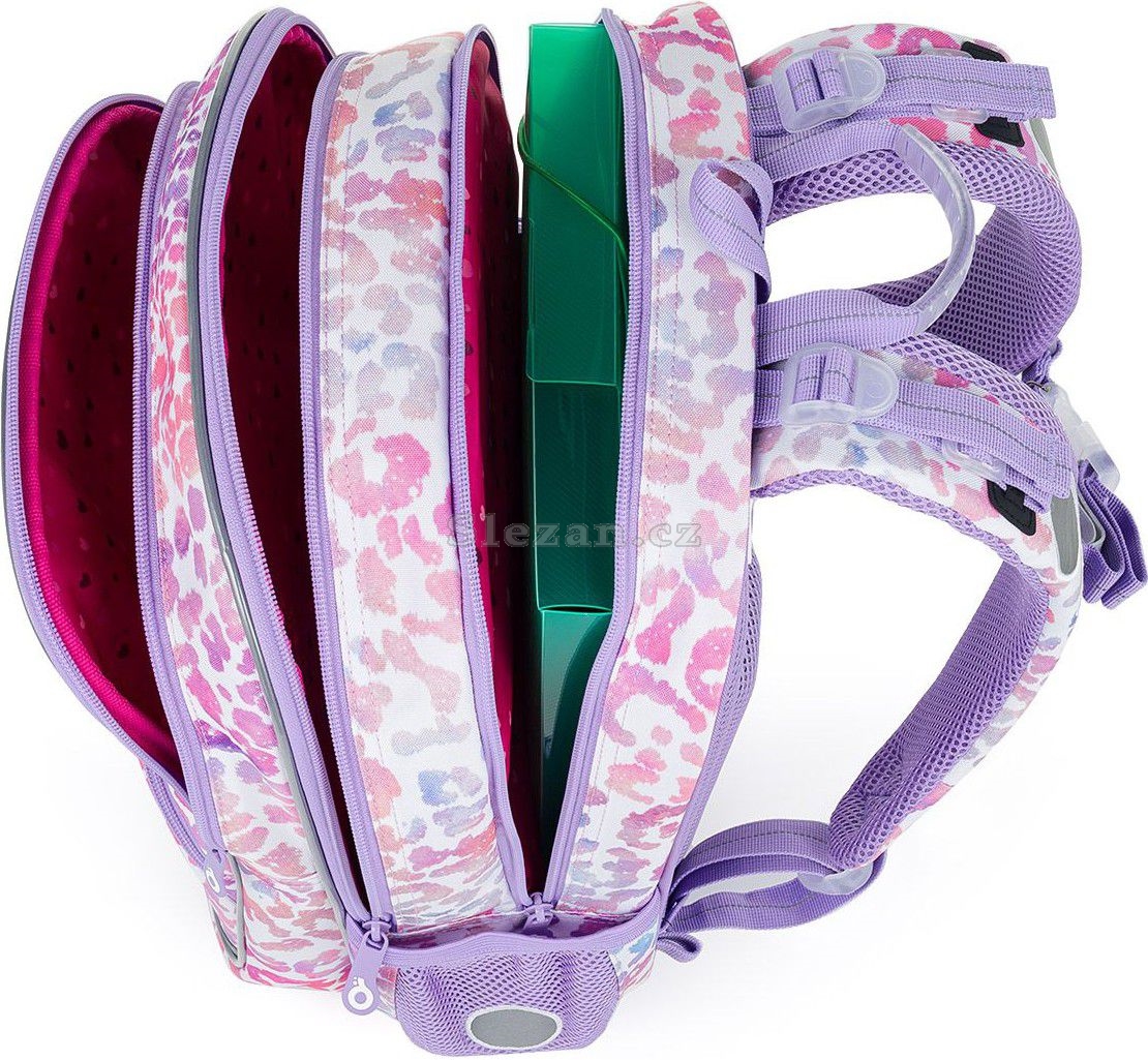 Batoh má dvě hlavní objemné komory. Zadní komora batohu je širší, proto do ní vložte nejtěžší učivo a směrem dopředu odlehčujte. V prostřední komoře je umístěna síťová kapsa na zip a jmenovka.
