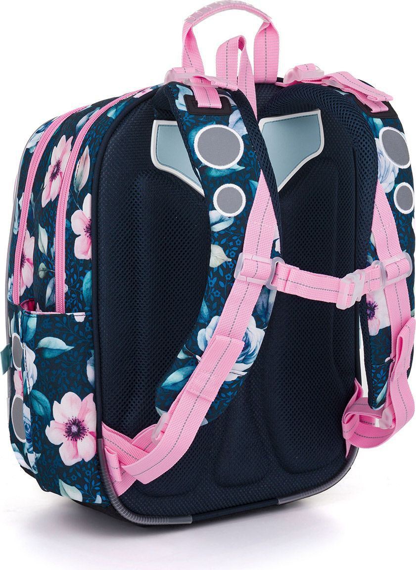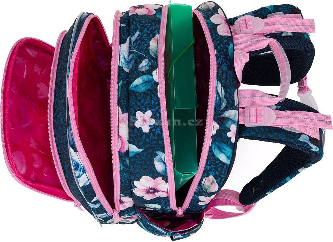Do široké zadní komory doporučujeme dát nejtěžší učebnice nebo desky na sešity a směrem od zad postupně odlehčovat. Přední komora je o něco užší, obsahuje malou síťovou kapsu na zip a jmenovku. Sem můžete dát například penál ENDY 25003 ve stejném designu nebo krabičku na svačinu. Boční kapsa skvěle udrží lahev ZIVA o objemu 0,5 litru.