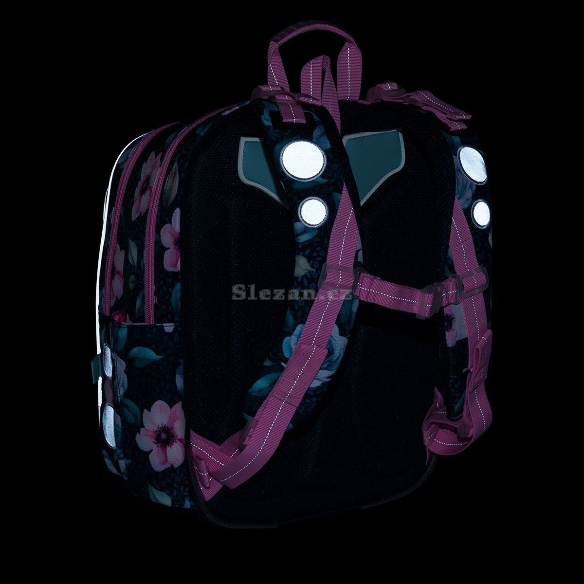 - reflexní prvky: na čele a bocích batohu, na ramenních popruzích