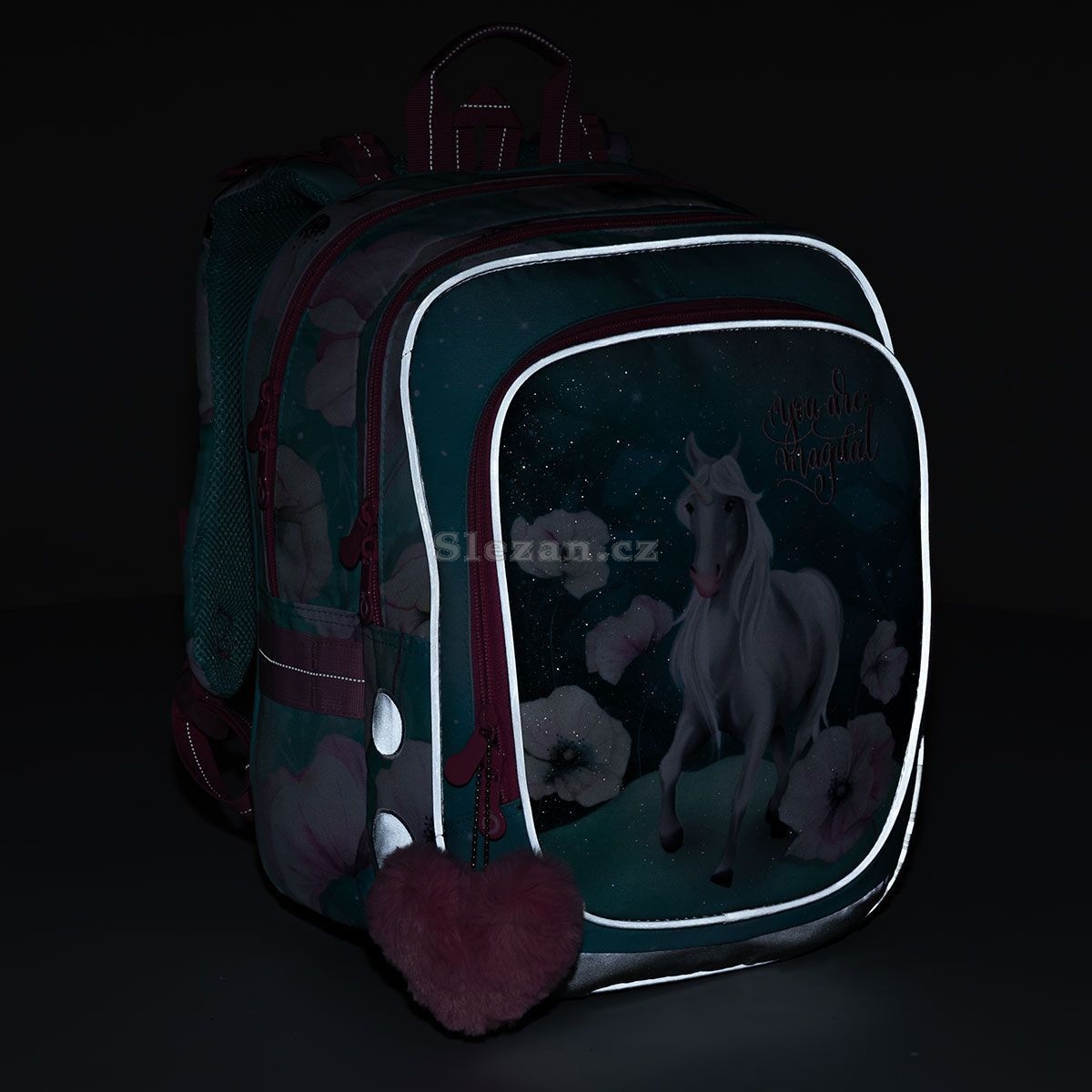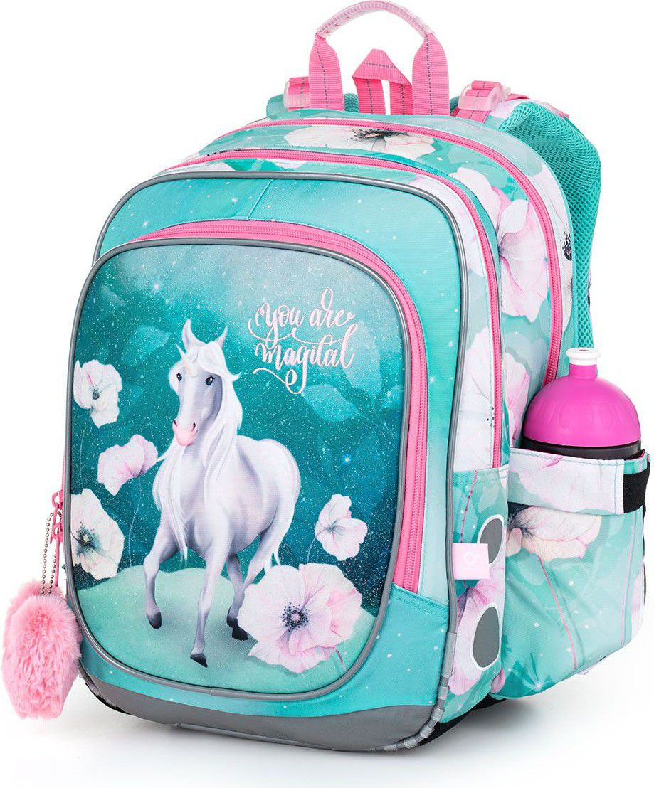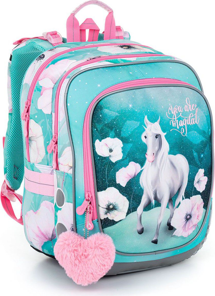 Model ENDY neváží ani kilogram, proto je ideální pro holčičky od první až do třetí třídy ZŠ. Vymazlený jednorožec na třpytivém tyrkysovém podkladu. To je ideální společník prvních tří let na základní škole, co myslíte?