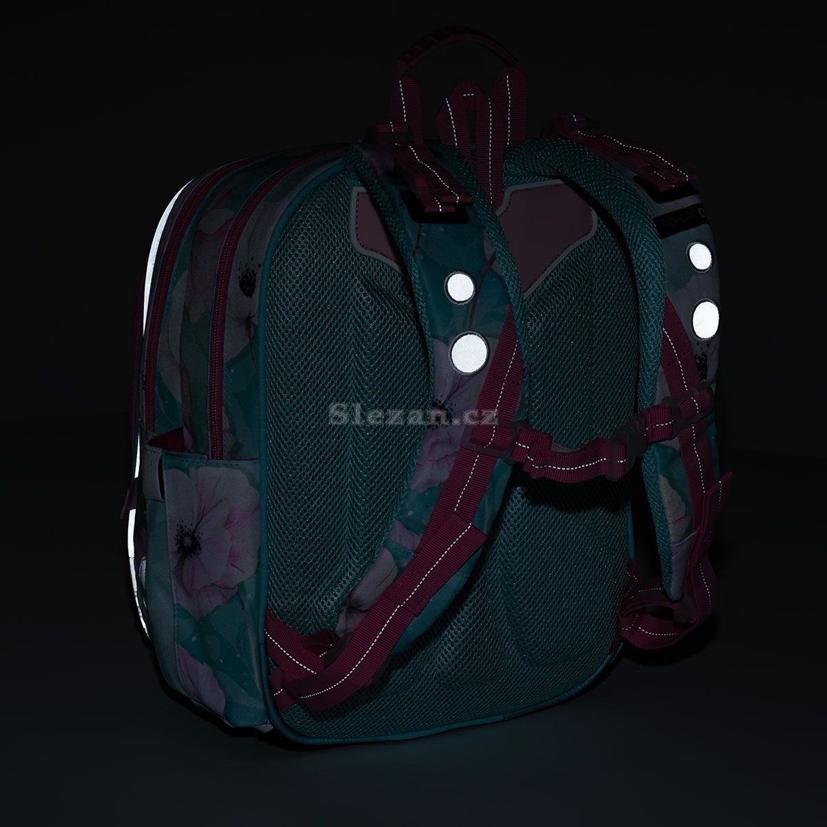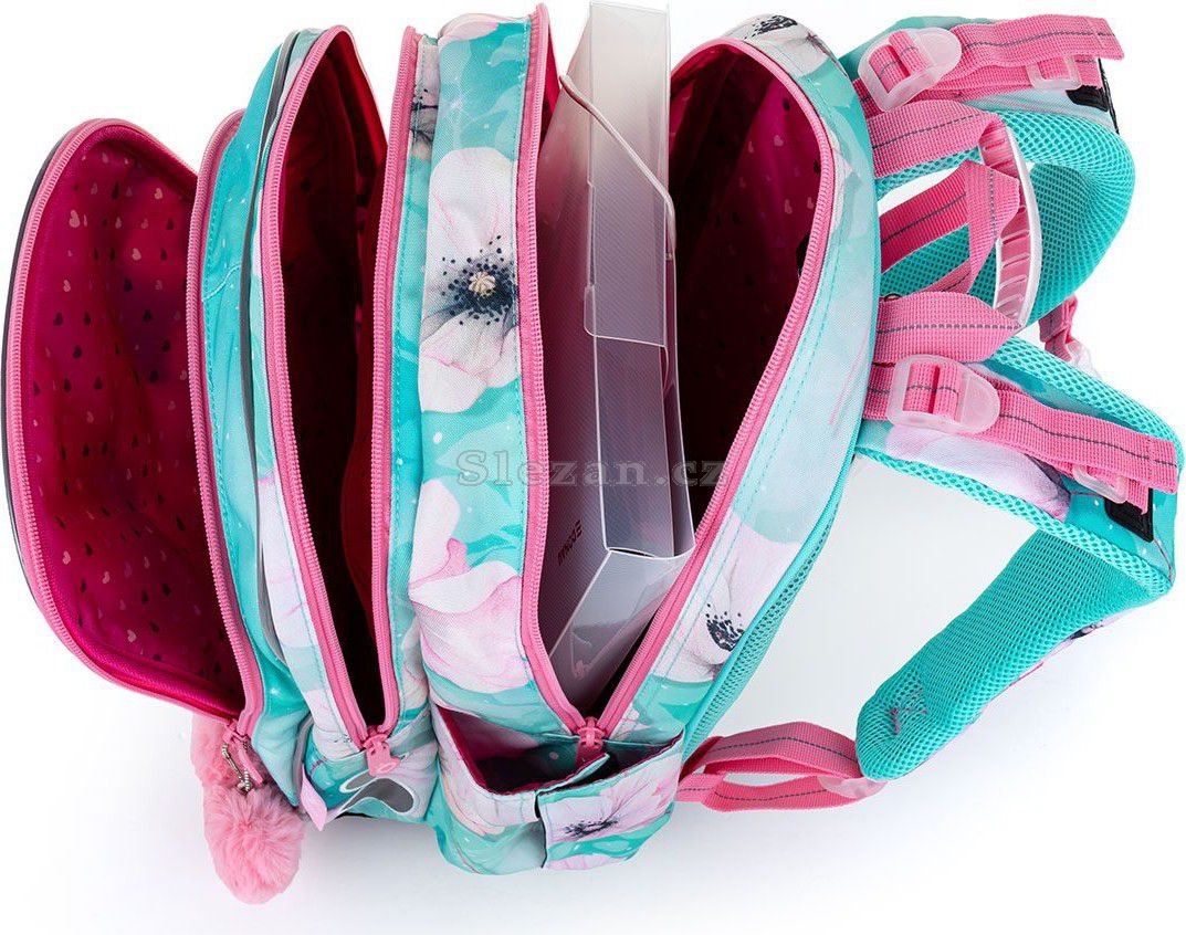 Batoh má dvě objemné hlavní komory. Zadní komora je širší - doporučujeme k zádům dávat nejtěžší učebnice nebo desky na sešity. Přední komora je o něco užší a je v ní umístěna ještě malá síťová kapsa na zip a jmenovka.
