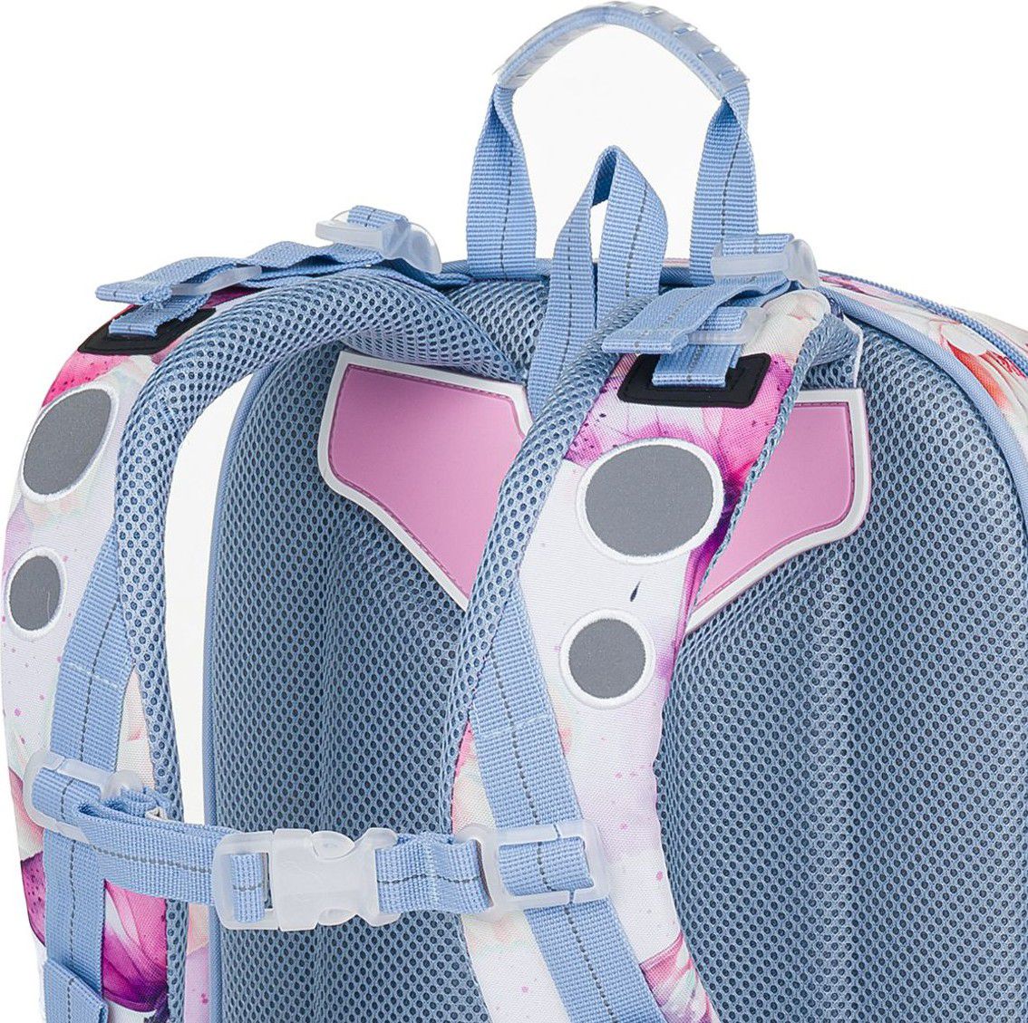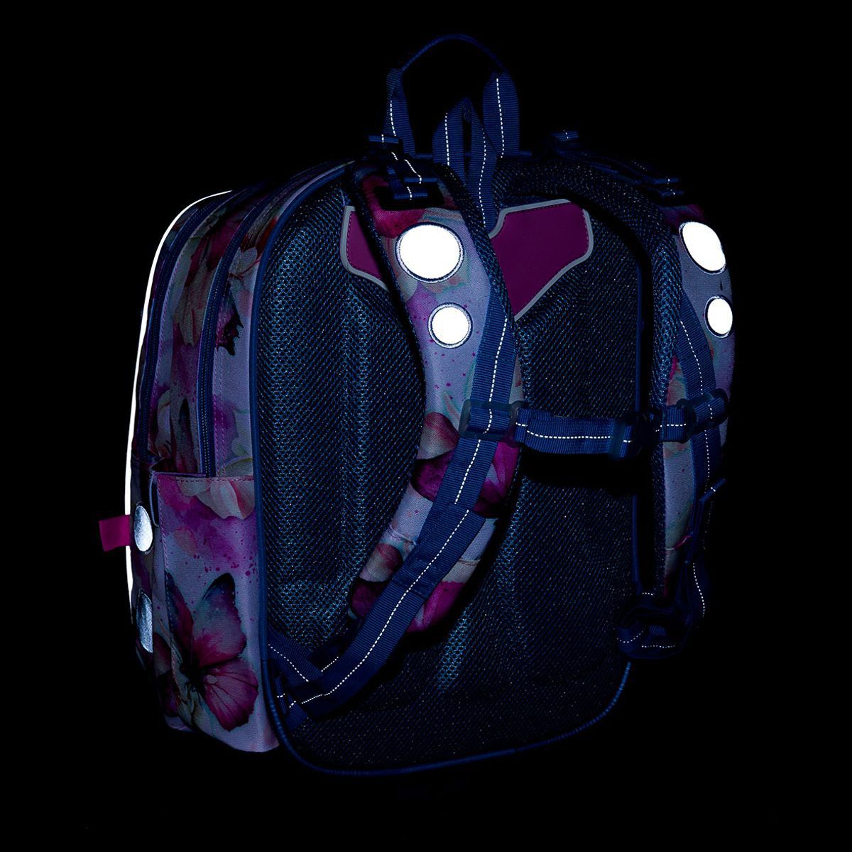 - reflexní prvky: na čele a bocích batohu, na ramenních popruzích