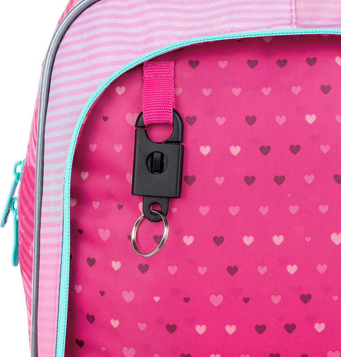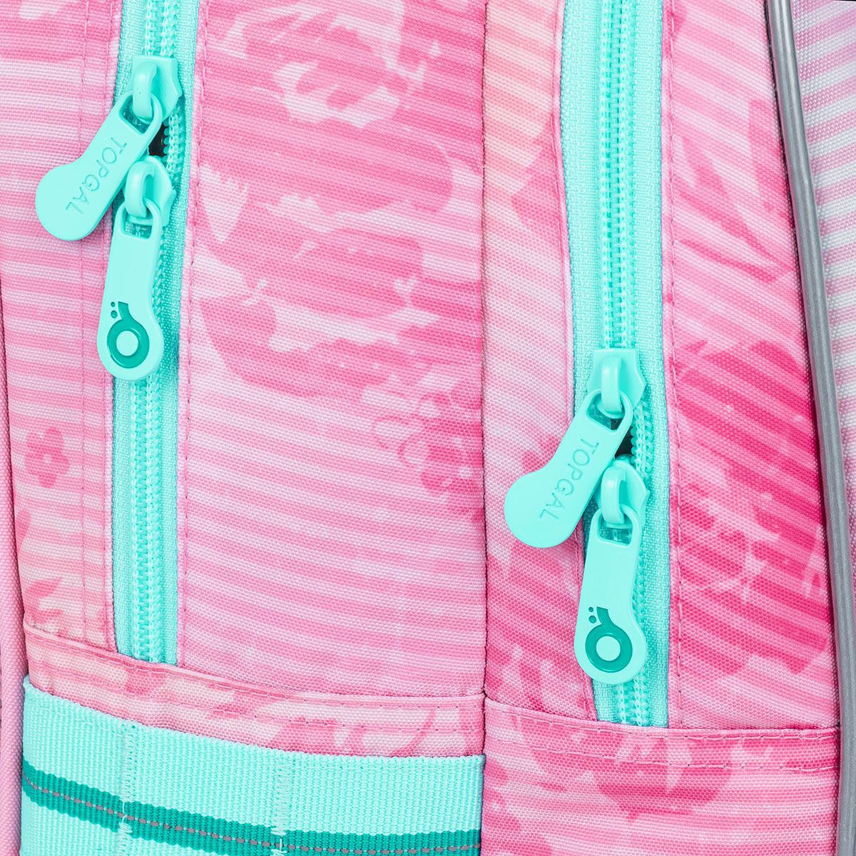 Přední hluboká kapsa pojme penál ve stejném designu nebo krabičku na svačinku. Do bočních kapes se vejdou lahvičky o objemu 0,5 litru.
