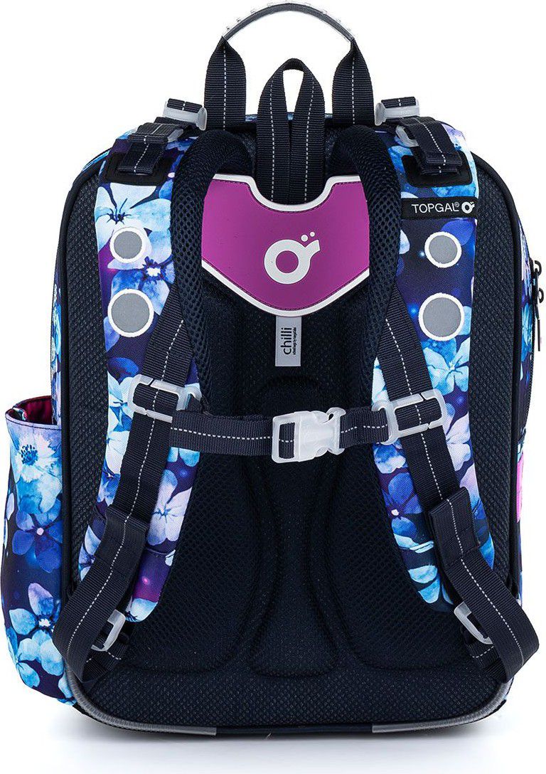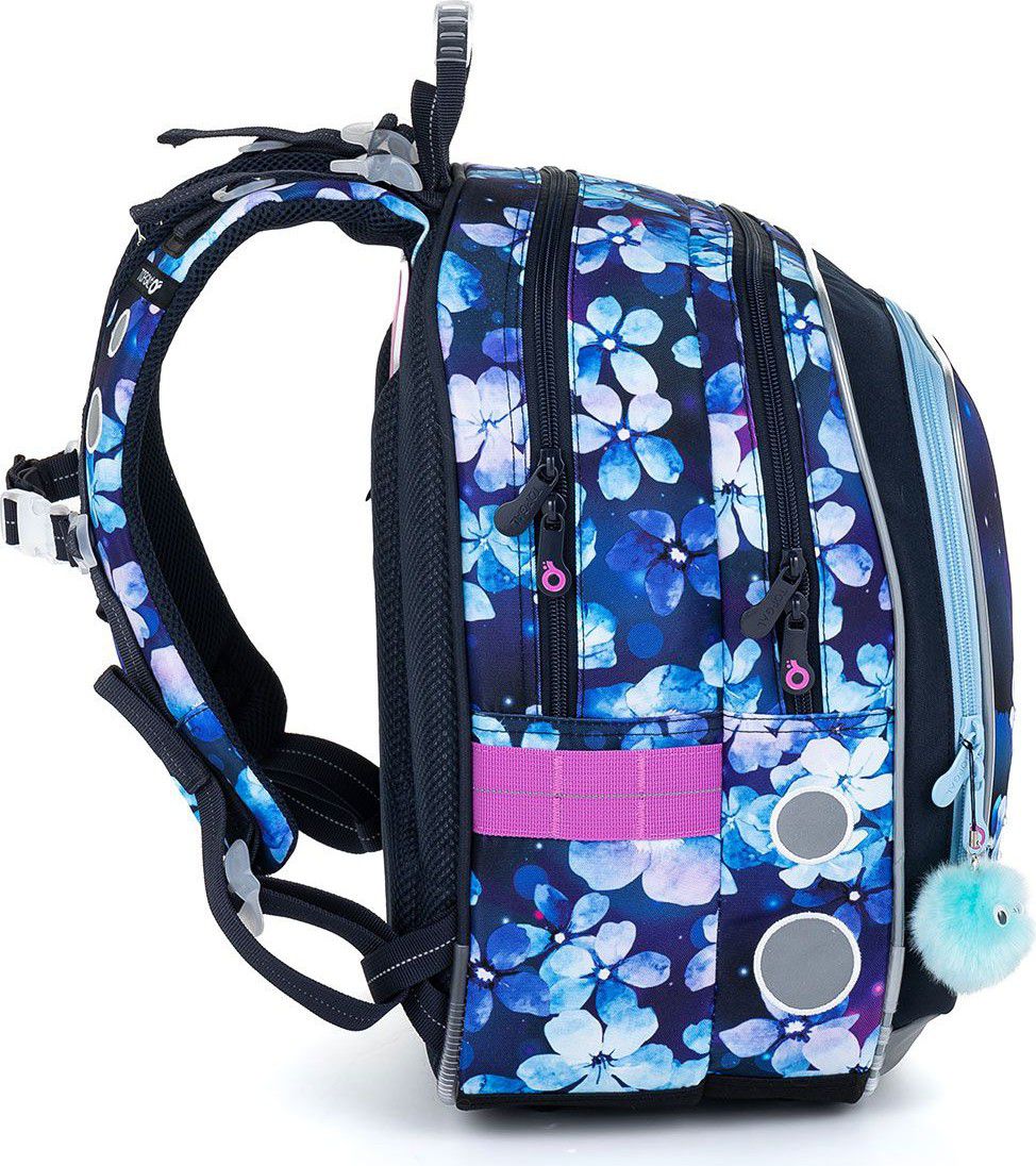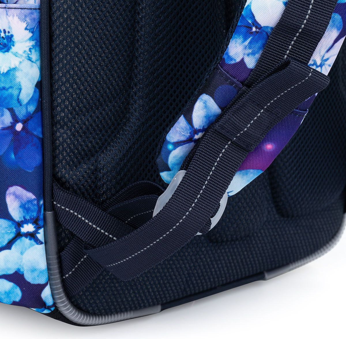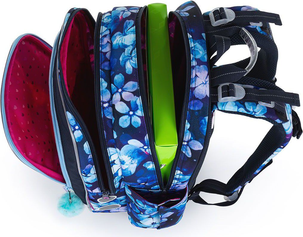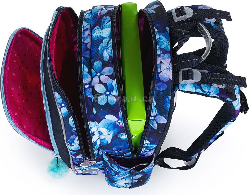 Batoh má dvě objemné hlavní komory. Zadní komora je širší - doporučujeme k zádům dávat nejtěžší učebnice nebo desky na sešity. Přední komora je o něco užší a je v ní umístěna ještě malá síťová kapsa na zip a jmenovka.