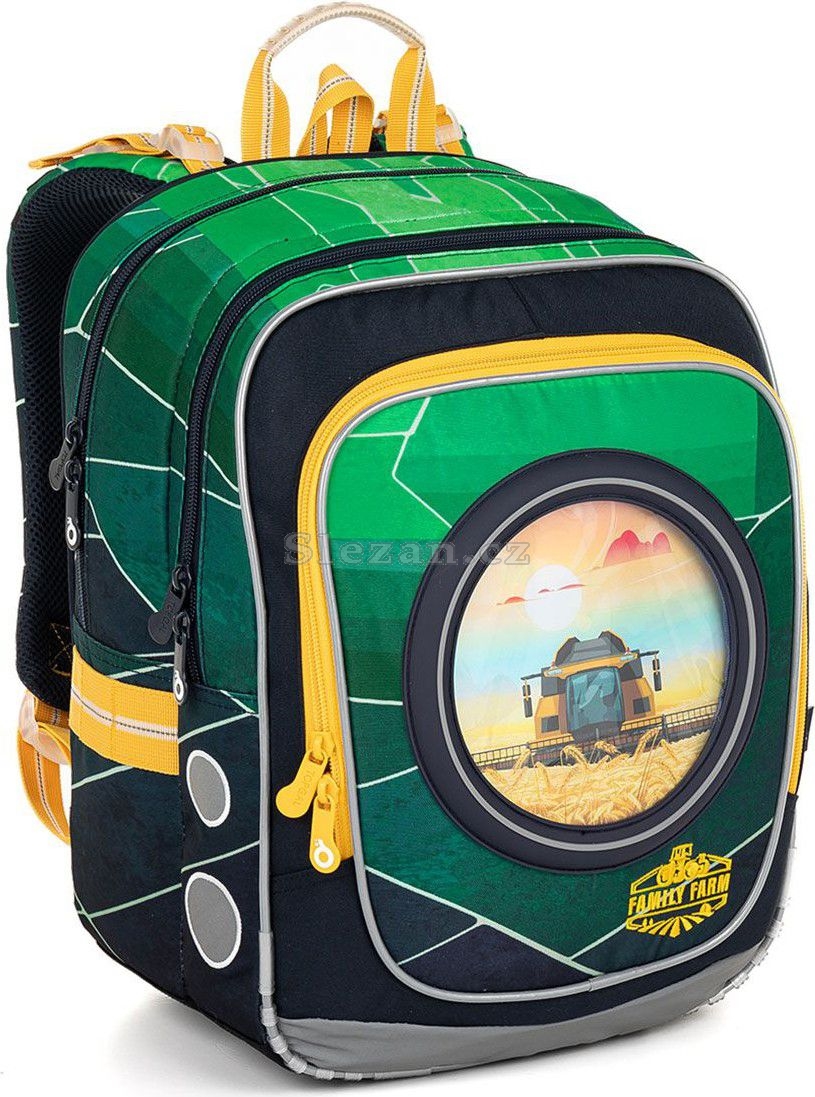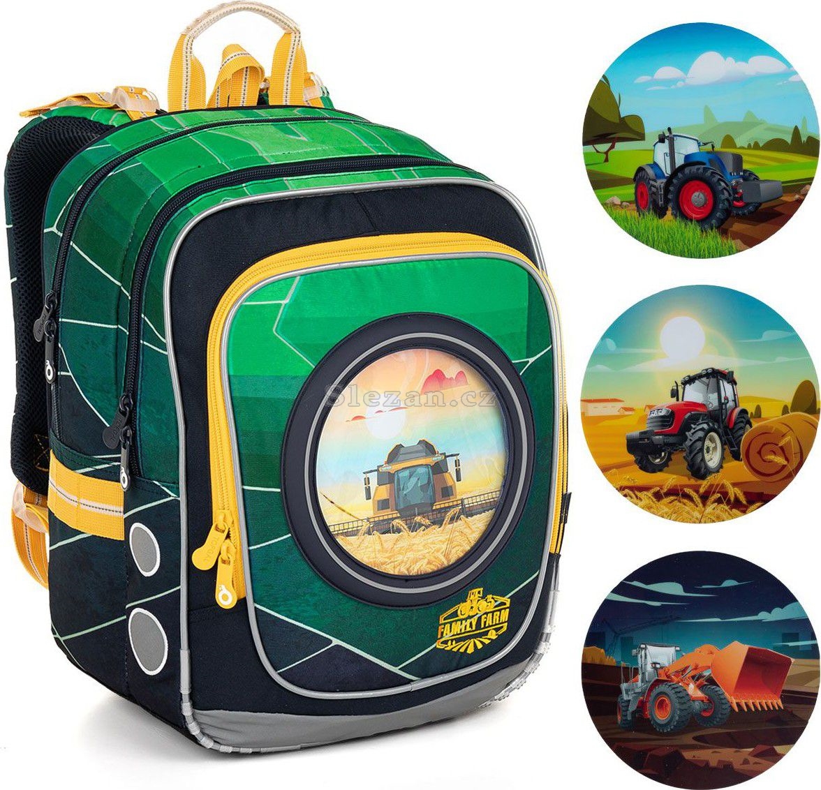Model ENDY neváží ani kilogram, proto je ideální pro kluky od první až do třetí třídy ZŠ. Červený a modrý traktor, kombajn nebo bagr? Díky vyměnitelným obrázkům můžou mít každý den jiný batoh.