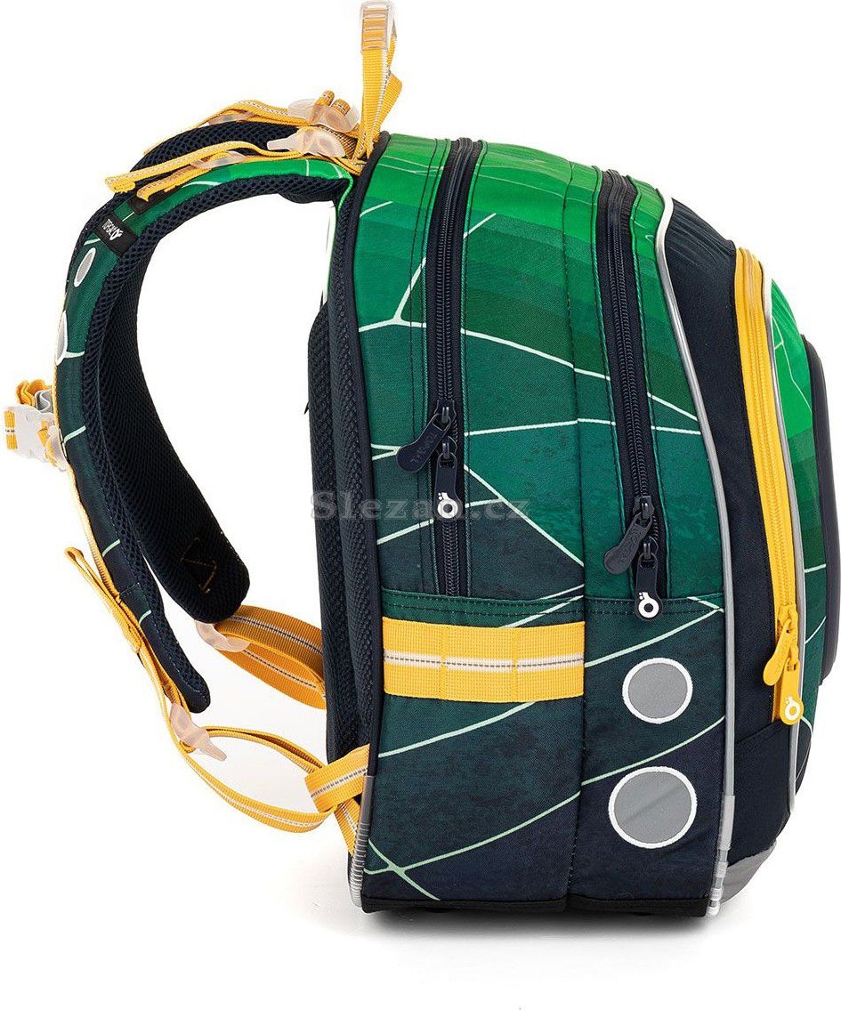 Batoh má dvě objemné hlavní komory. Zadní komora je širší - doporučujeme k zádům dávat nejtěžší učebnice nebo desky na sešity. Přední komora je o něco užší a je v ní umístěna ještě malá síťová kapsa na zip a jmenovka.