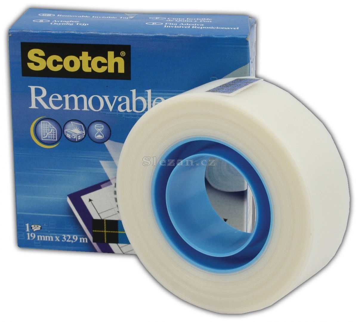 Beze zbytku snímatelná samolepicí páska. Je neviditelná, nežloutne a je odolná proti vlhkosti. Kopíruje se bez stínů. Popisovatelná. Rozměry: 19 mm x 32,9 m.
