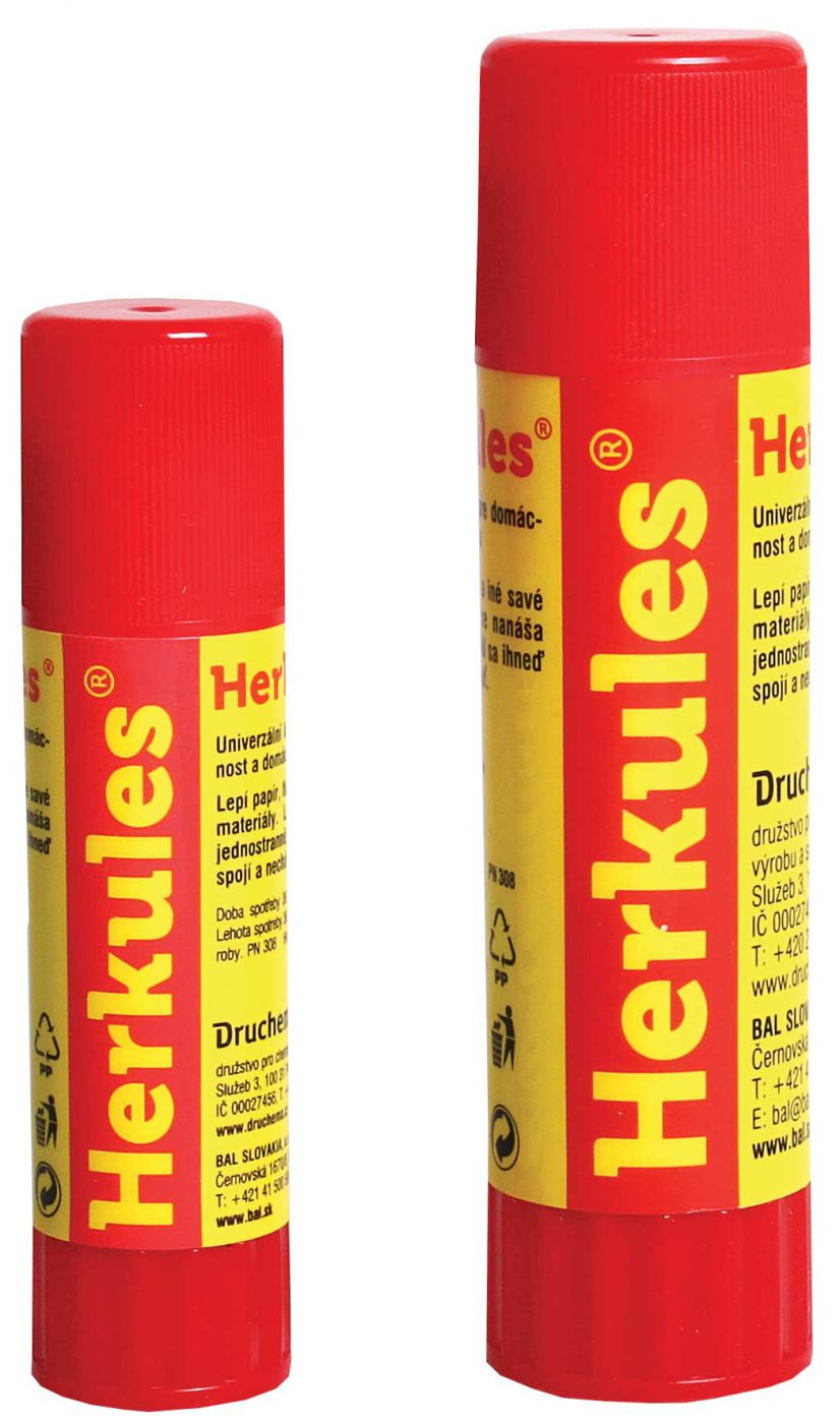 Univerzální tyčinka vhodná je zejména pro děti, do škol, do hodin ručních prací nebo k vytváření jednoduchých papírových prezentací. Samotná tyčinka pracuje na principu výsuvné lepící části, kterou se žádoucí oblast určená k lepšení jednoduše potře. Před vysycháním je pak tyčinka Herkules chráněna nasazovacím uzávěrem.