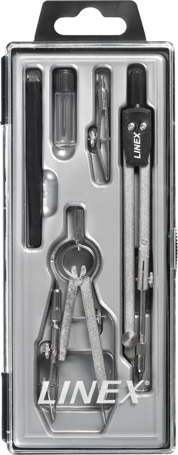 Vysoce odolné, školní, kovové kružítko s ohebným kloubem a příslušenstvím.