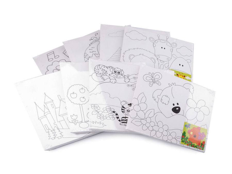 Popis Malířské plátno 20x25 cm s předtiskem, barvami a štětcem 5 bílá medvěd, 1 sada
