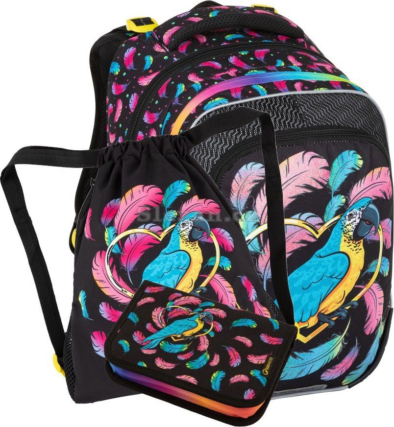 Barevný set s papouškem pro malé školačky od 1. do 3. třídy