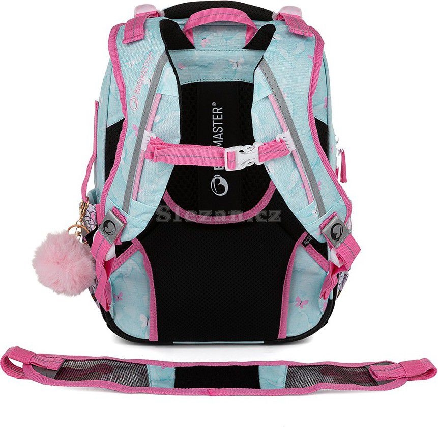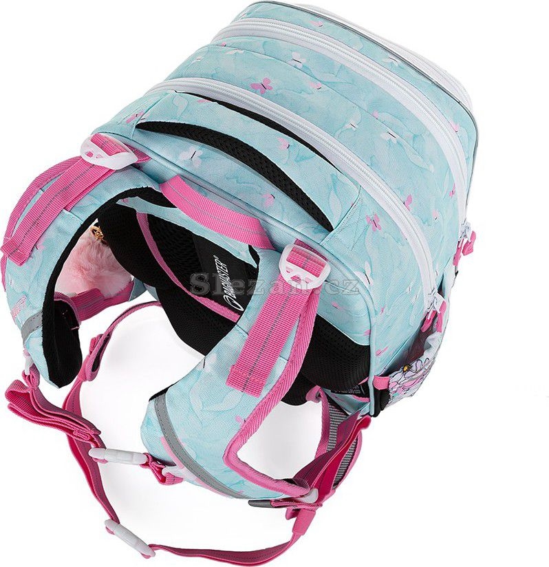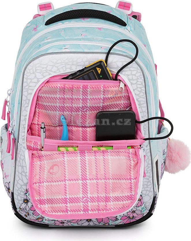 Malé slečny ocení přihrádky na učení, na svačinu a cennosti, chlupatý přívěsek i vychytaný organizér