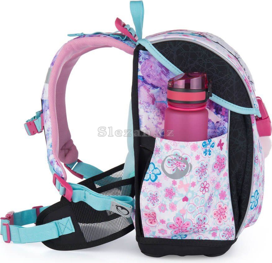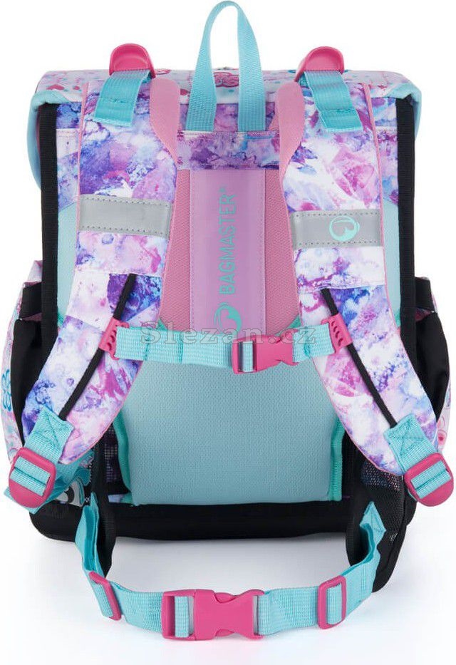 Klopna uzavíratelná na přezku s blikačkou (baterka uvnitř blikačky) - na vnitřní straně klopny transparentní kapsa na rozvrh